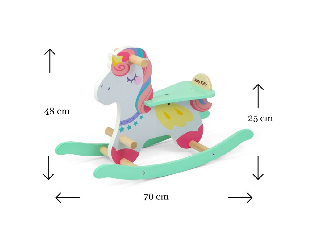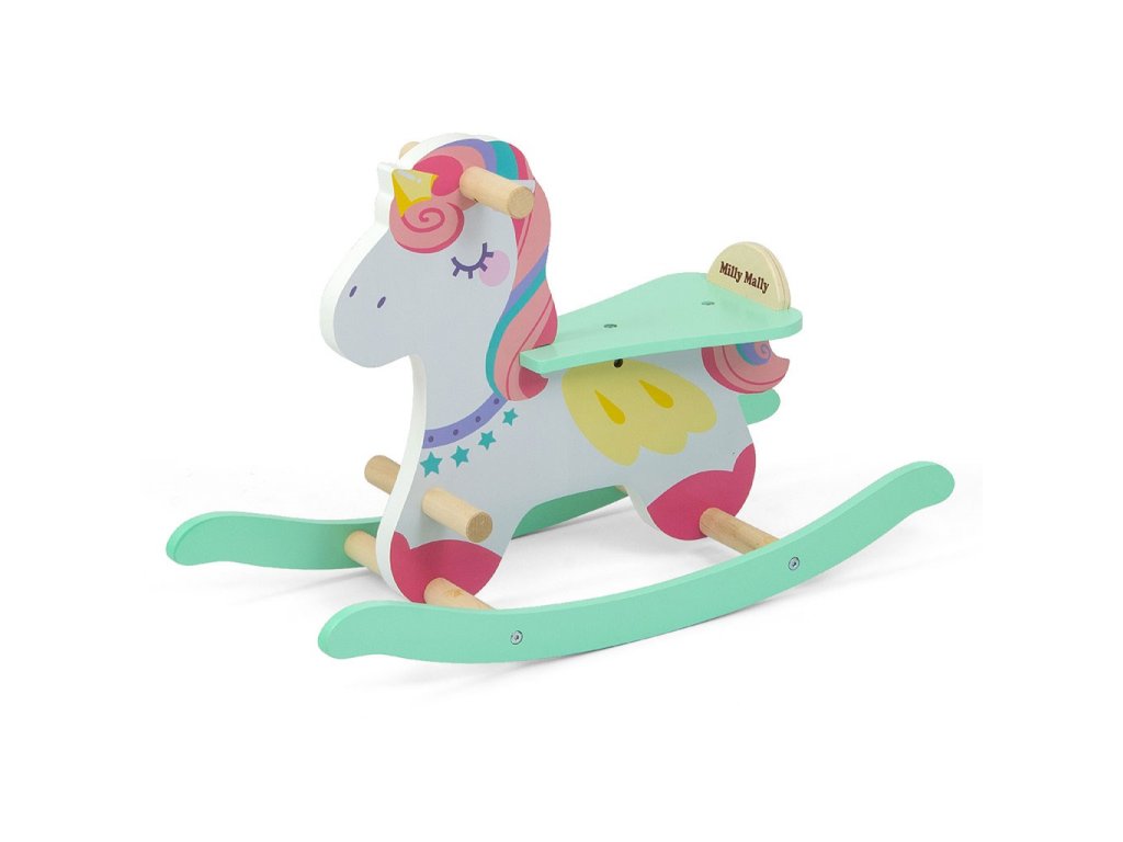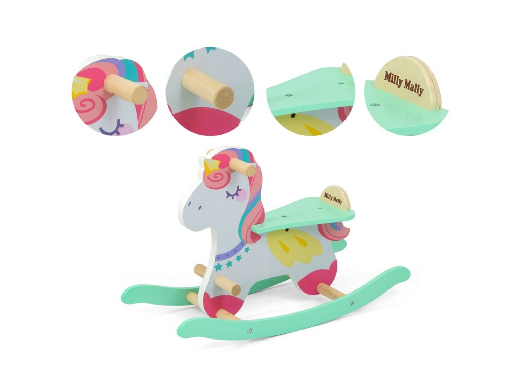 Drevený hojdací koník s operadlom Milly Mally Lucky 18 Unicorn - 55595