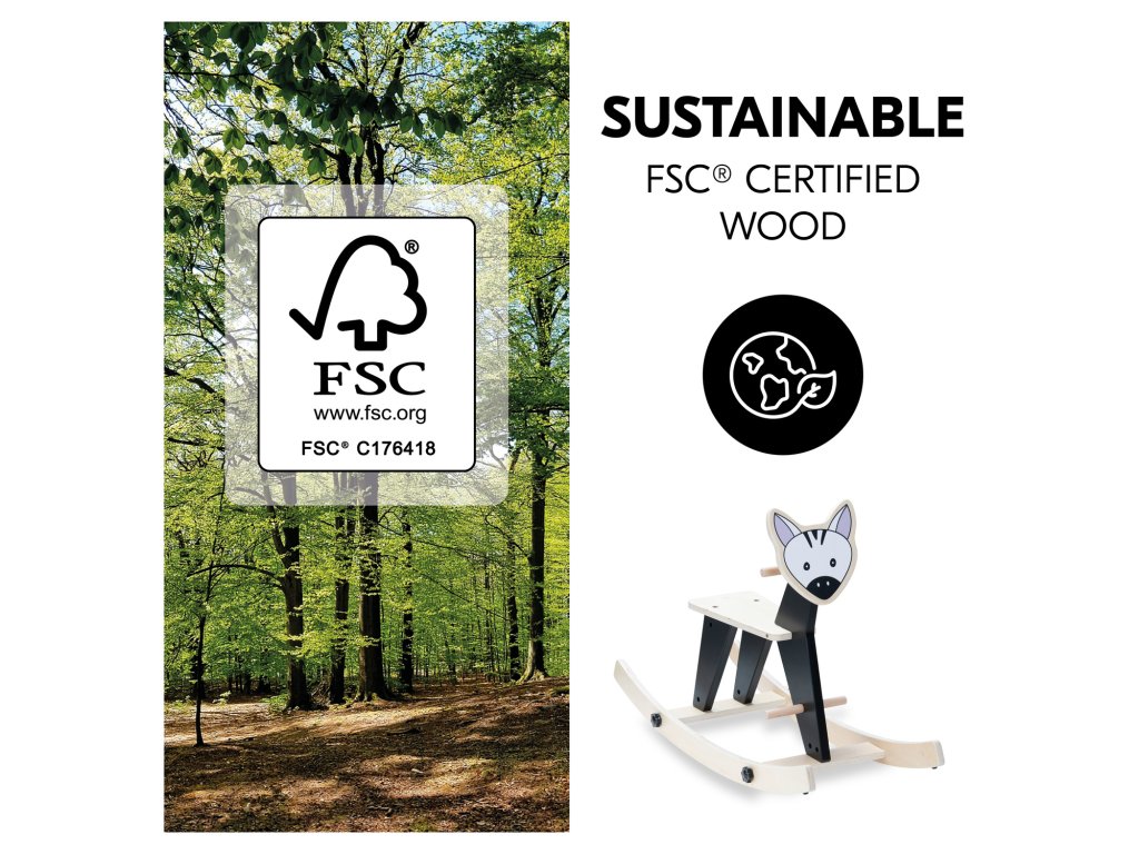 DREVO S CERTIFIKÁTOM FSC® PRE ZDRAVŠIE PROSTREDIE // Hojdacie zvieratko je vyrobené z odolného dreva, ktoré pochádza z lesov s certifikátom FSC®, ktorý zaručuje udržateľné a ekologické využívanie lesov na ochranu rastlín a zvierat.