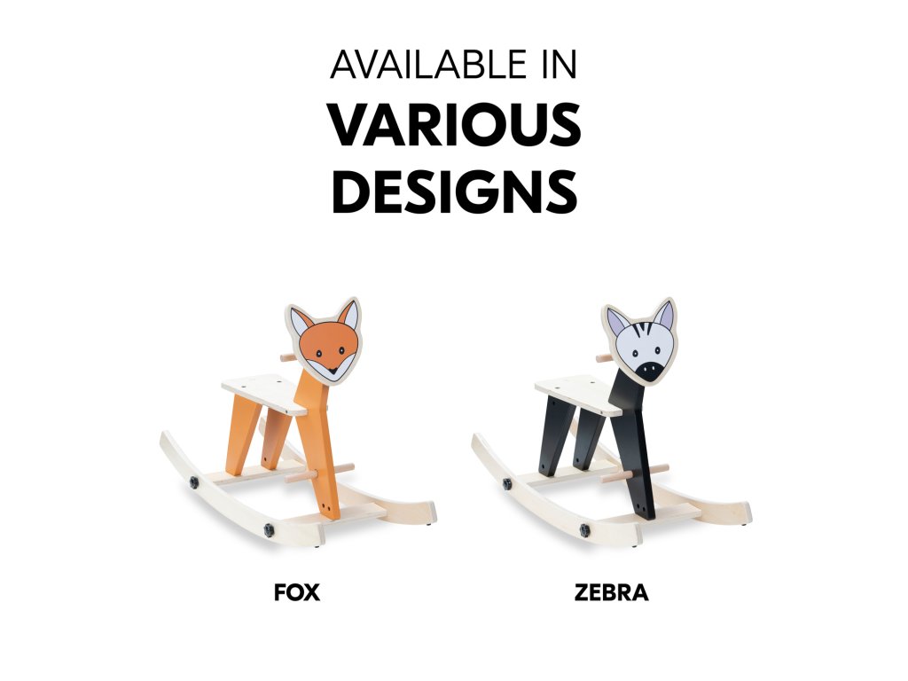 DOSTUPNÉ V RÔZNYCH MOTÍVOCH // Hojdacie zvieratko Rock N Swing je dostupné v rôznych motívoch, takže si môžete vybrať obľúbené zvieratko svojho dieťaťa, napríklad zebru alebo líšku.