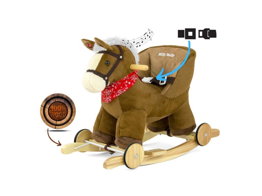 Hojdací koník s melódiou a kolieskami Milly Mally Polly hnedý - 36420