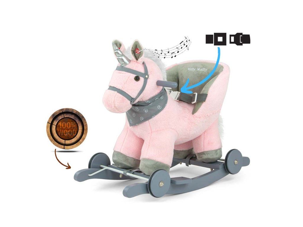 Hojdací koník s melódiou a kolieskami Milly Mally Polly rúžový - 36416