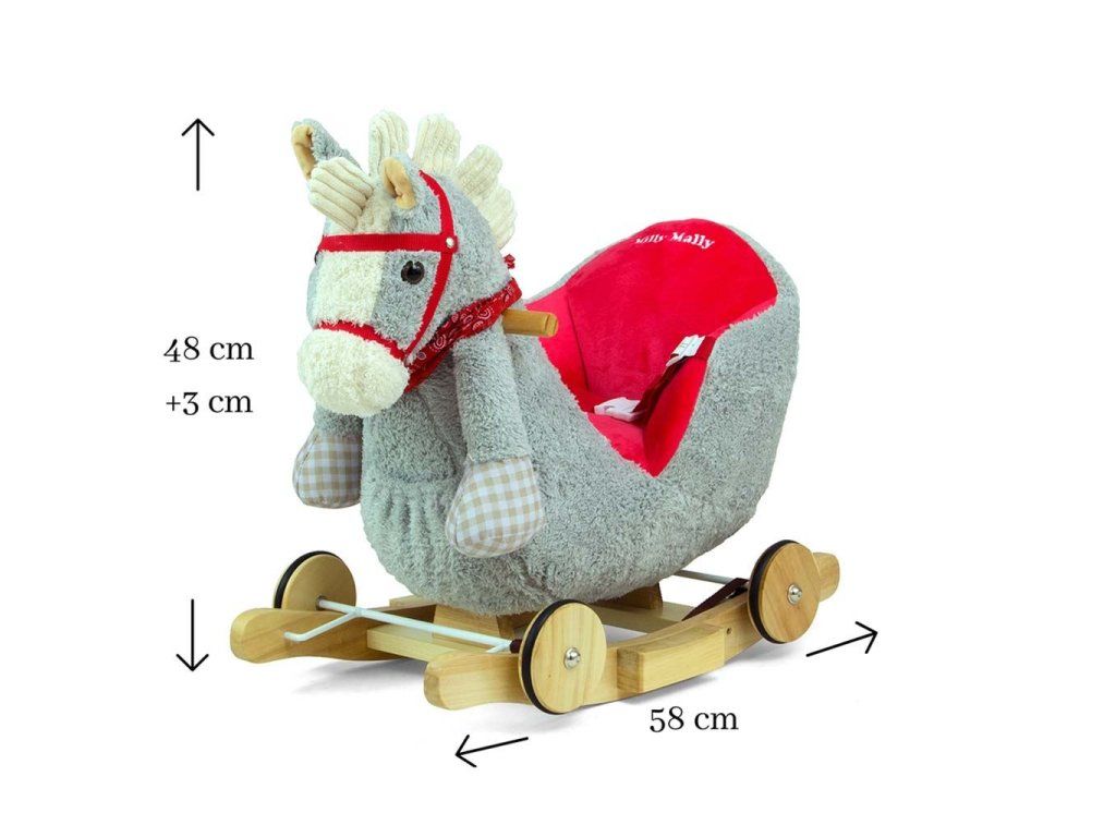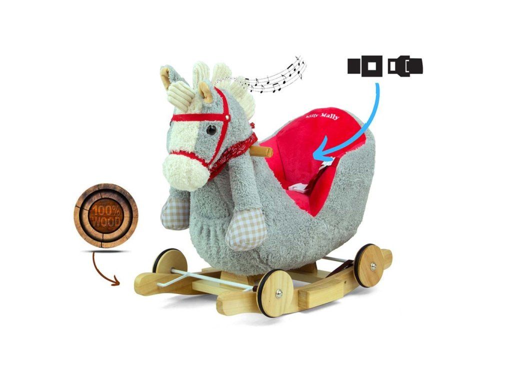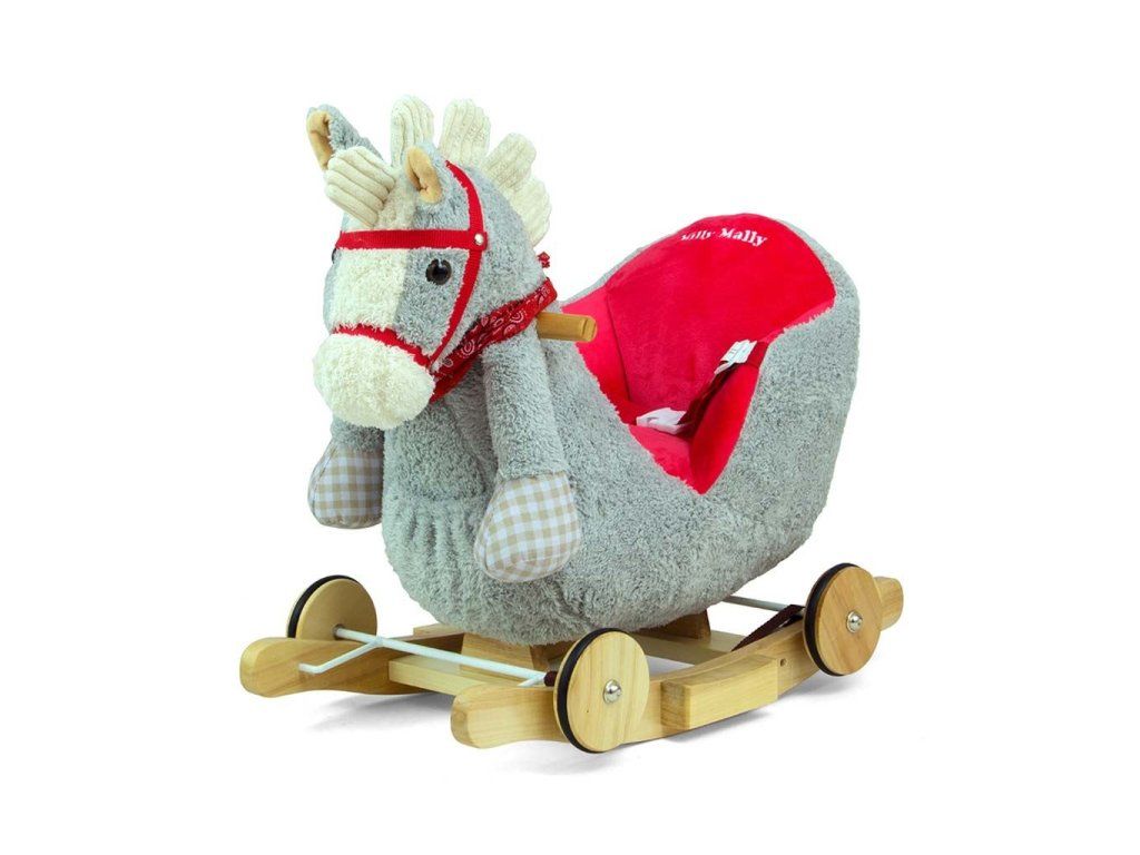 Hojdací koník s melódiou a kolieskami Milly Mally Polly sivo-červený - 45882