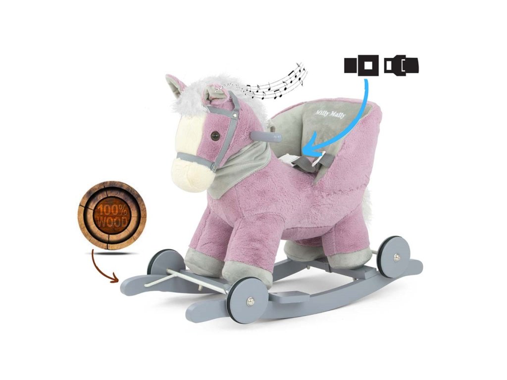 Hojdací koník s melódiou kolieskami Milly Mally Polly fialový - 36422