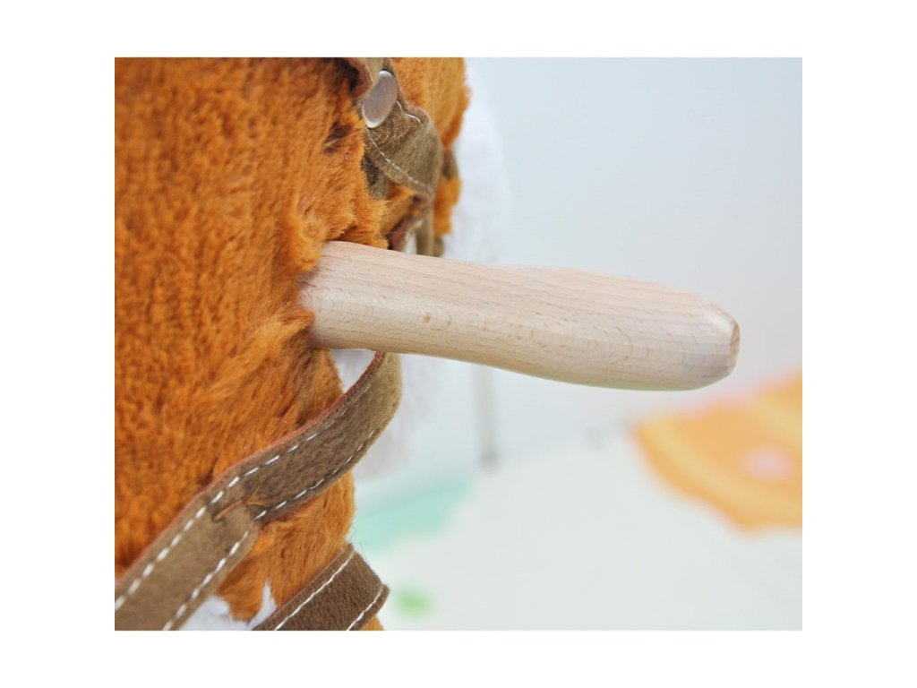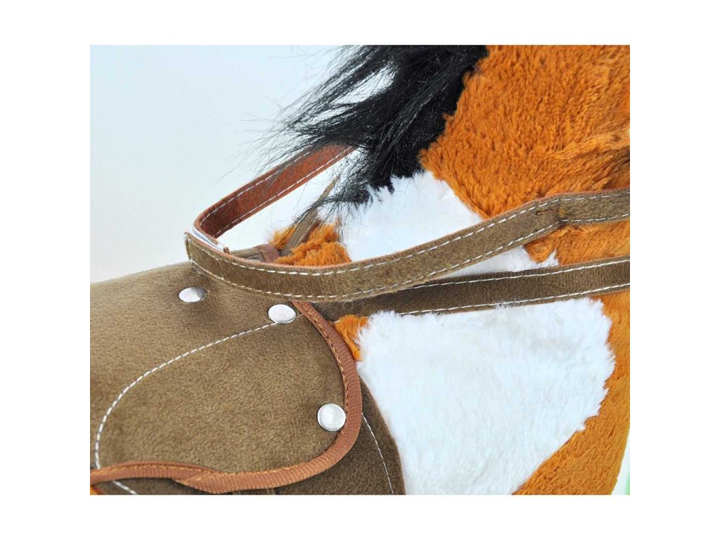 - koník má sedlo s strmene, uzdu a drevené rukoväte
