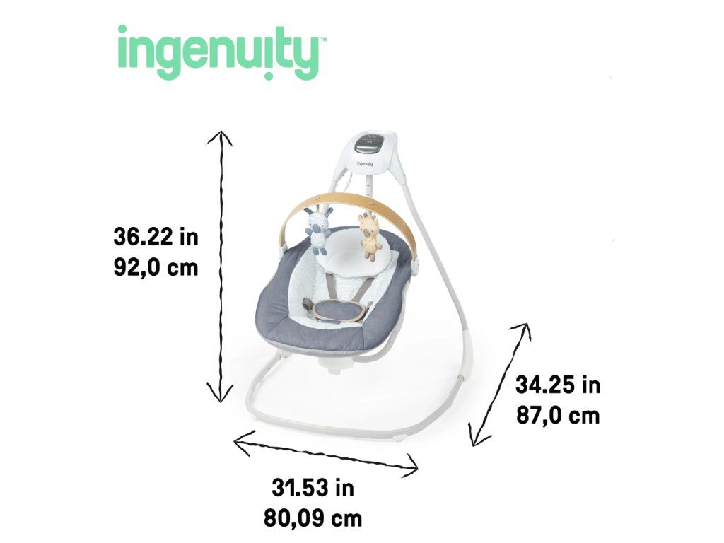 Zabavte dieťatko s kompaktnou hojdačkou Ingenuity SimpleComfort – Chambray.Vlastnosti: