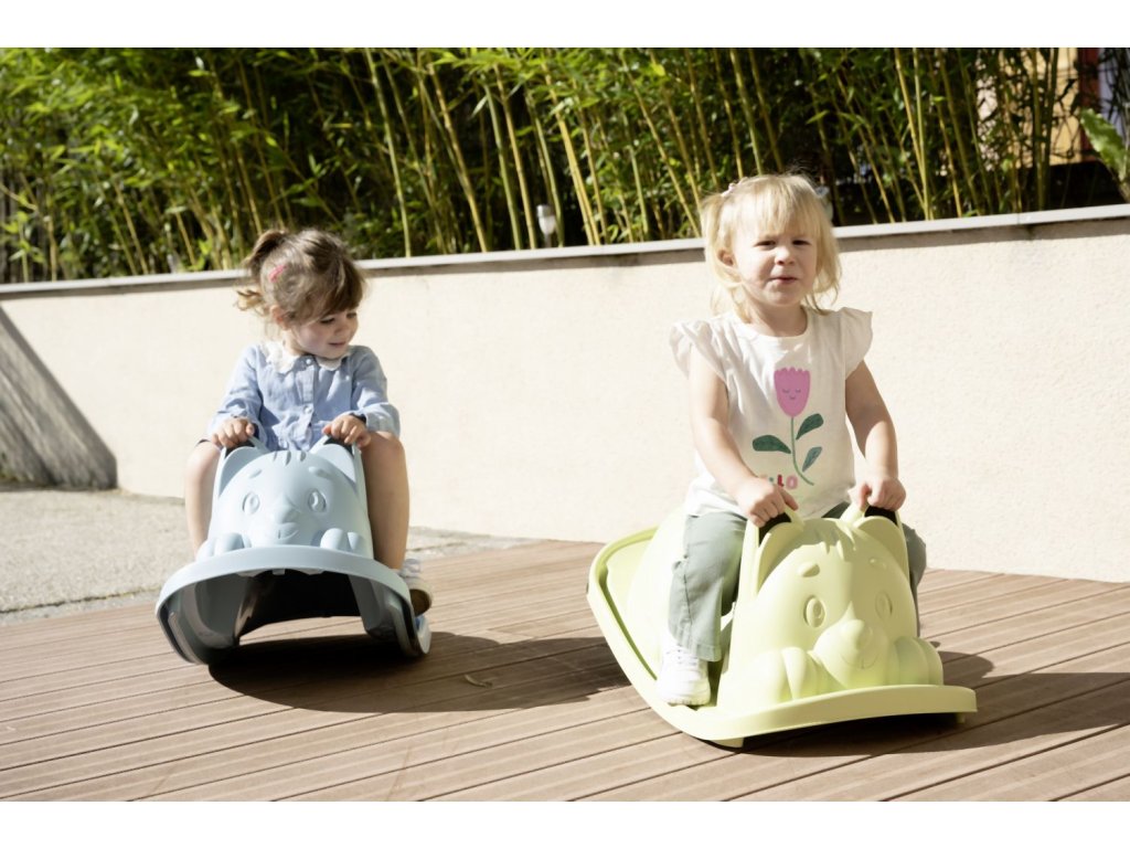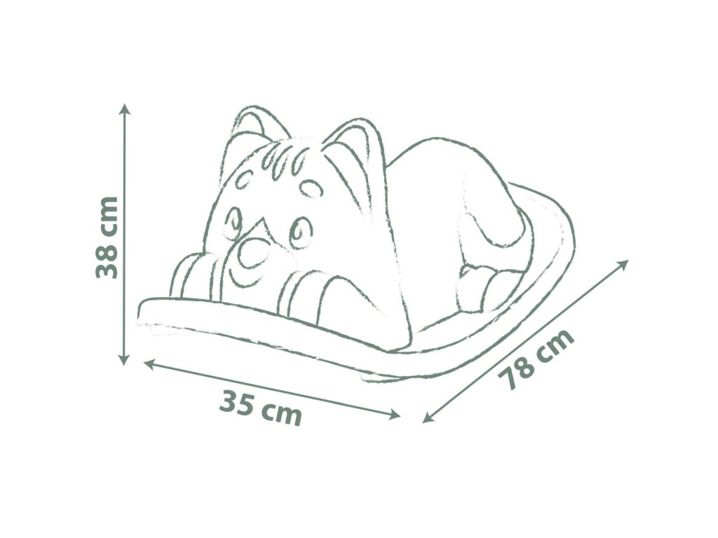 Hojdačka s ergonomickým sedátkom v tvare mačky v zelenej farbe. Uši slúžia ako držadlá. Plastové diely sú ošetrené anti-UV, čo zaisťuje dobrú odolnosť a stálosť farieb v priebehu času. Tento výrobok obsahuje minimálne 98% recyklovaného materiálu. Nosnosť maximálne 50 kg. Rozmery hojdačky (DxŠxV): 35 x 78 x 38 cm.Dodatočné parametre