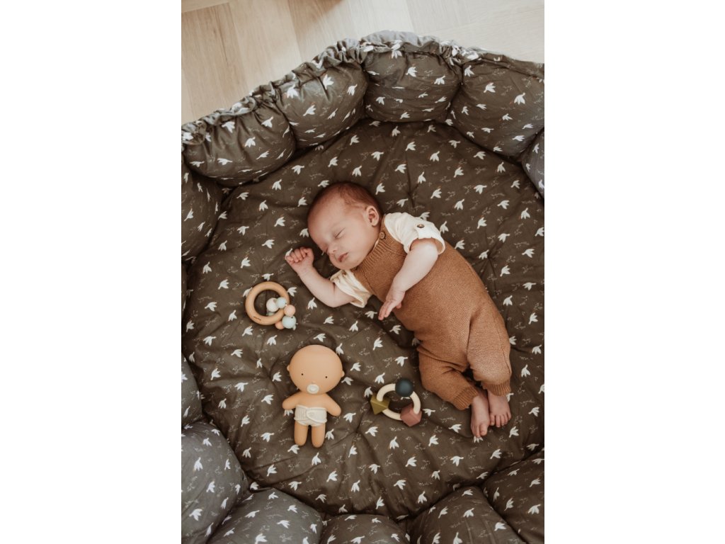 3v1 dizajn: hracia podložka, bezpečné hniezdo a miesto na hračky