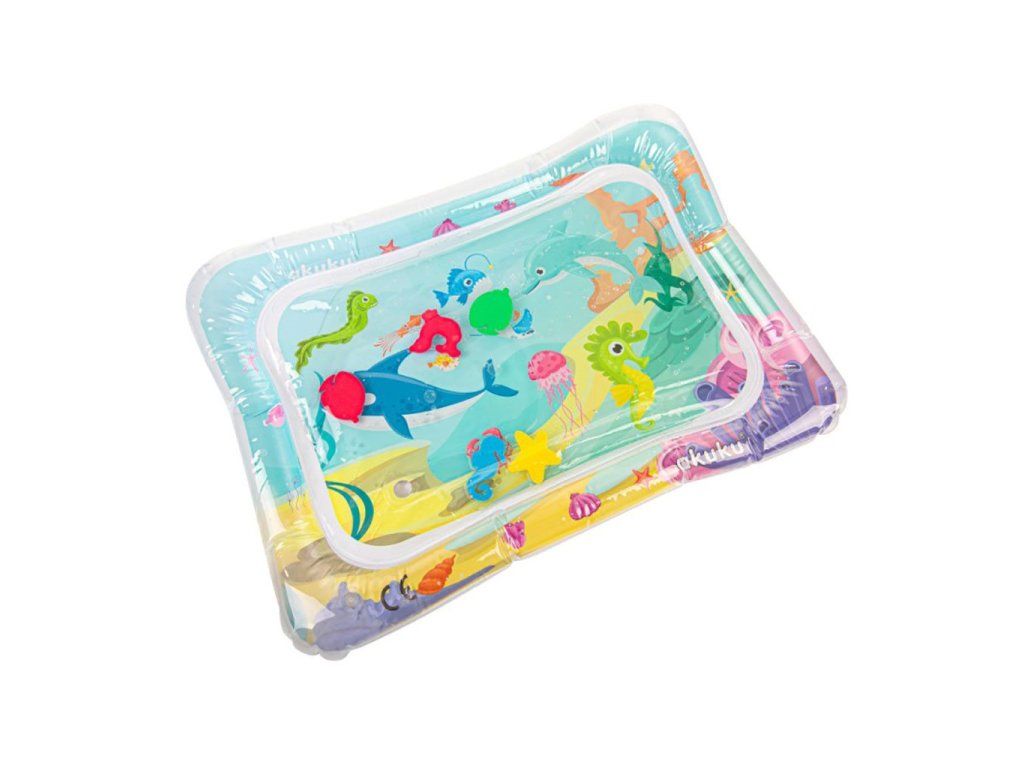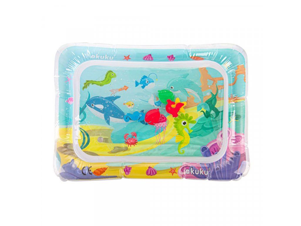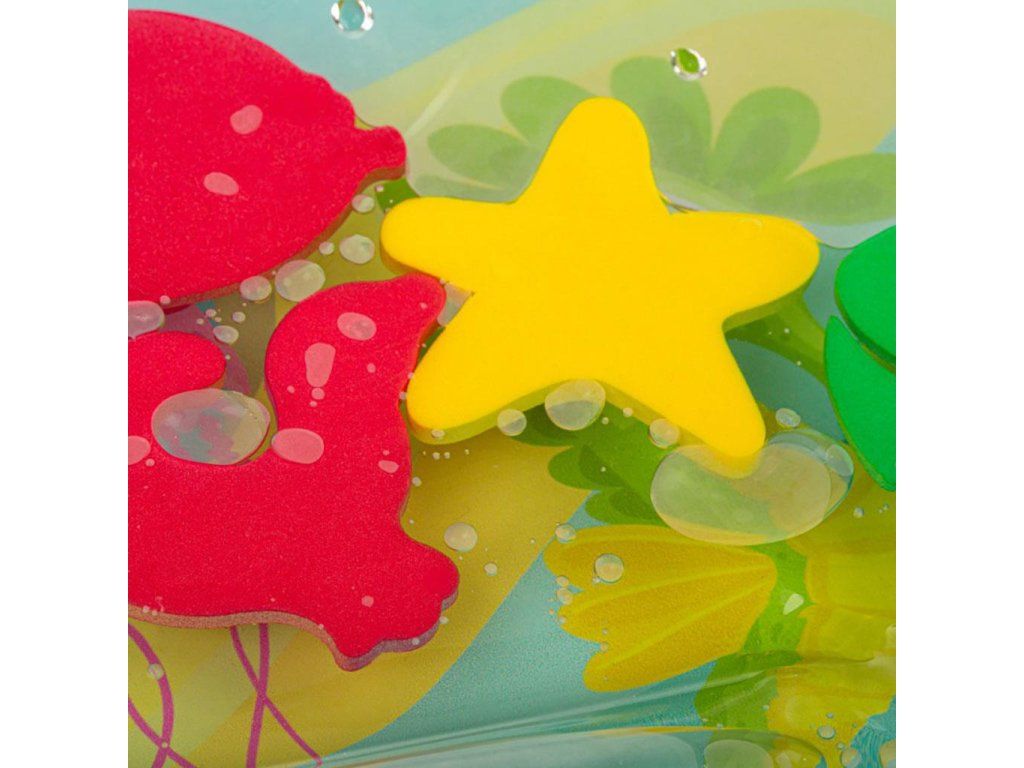 Jedinečná interaktívna podložka vyrobená z kvalitného materiálu, ktorý zaručuje mimoriadnu odolnosť. Okraj podložky nafúknite a do stredu napustite vodu. Vnútri je 5 farebných vodných živočíchov, ktoré sa pod váhou dieťaťa budú pohybovať v priestore naplnenom vodou. Počas hrania na podložke sa dieťa učí používať rôzne svalové partie na udržanie rovnováhy a samostatnému pohybu. Zvyšuje tým silu a vytrvalosť nôh, paží, brucha a chrbta. Potom, čo sa dieťa dohrá, vylejte vodu a vypustite.
