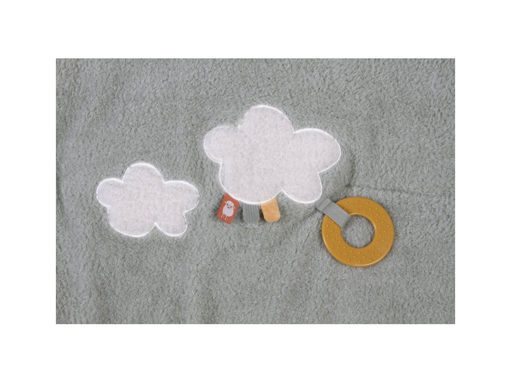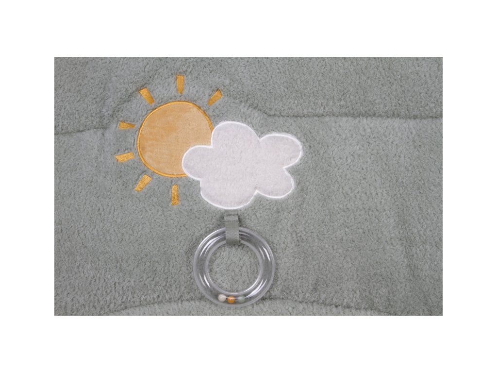 Mäkká hracia deka ponúka pohodlie a rôznorodé aktivity na zabavenie vášho dieťaťa. Na deke nájdete sliepočku s bezpečným zrkadlom schovaným pod krídlom, kuriatko, včielku so šuštiacimi krídlami i mráčiky s hrkajúcimi krúžkami a hryzátkom.