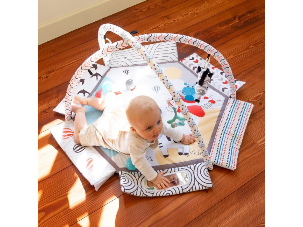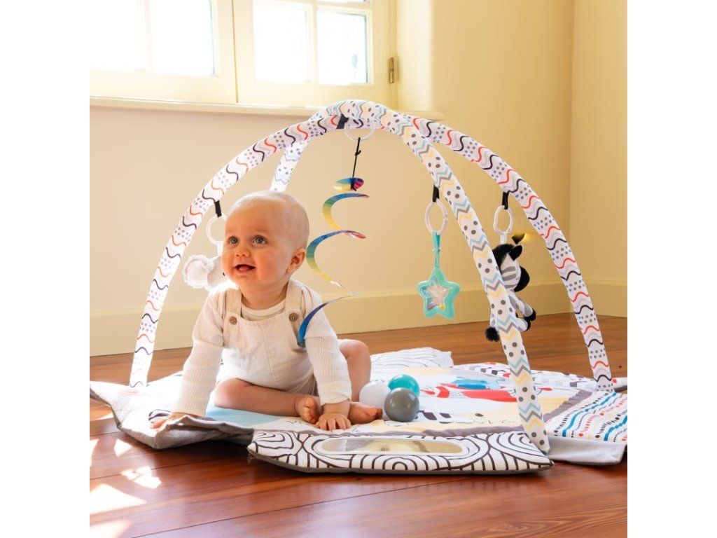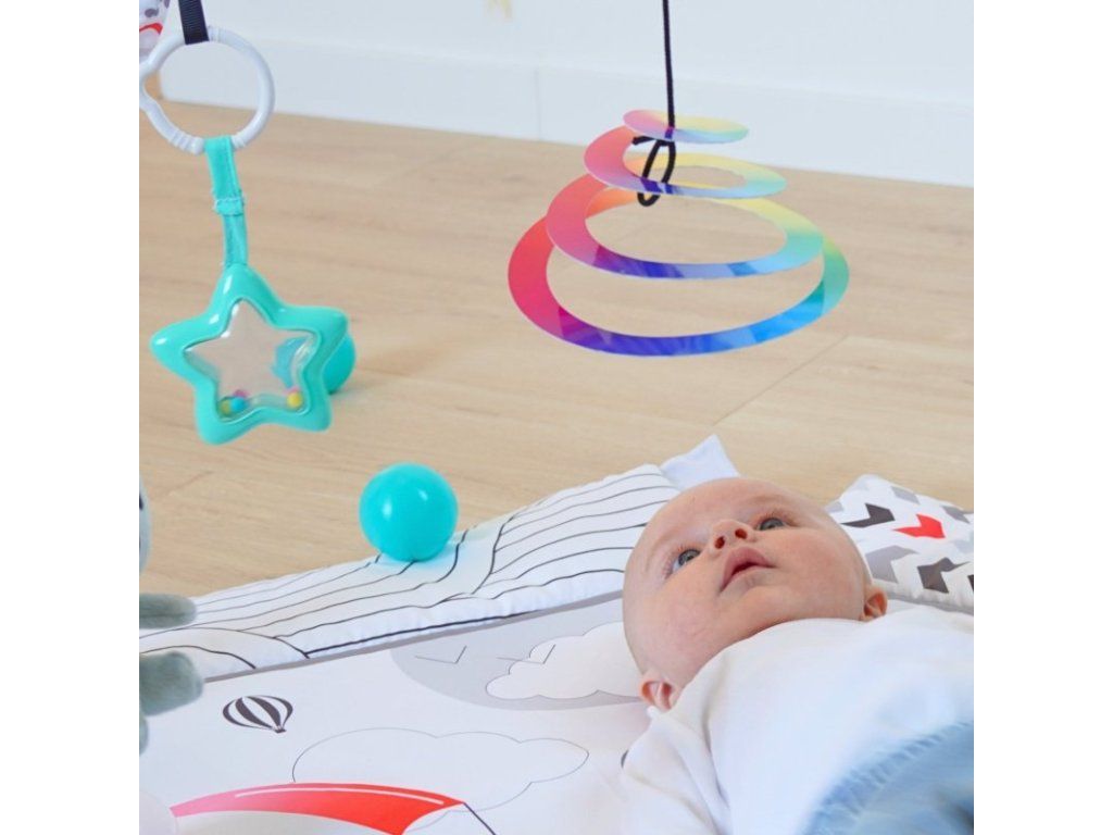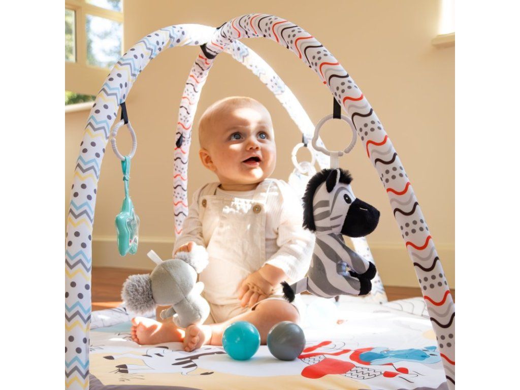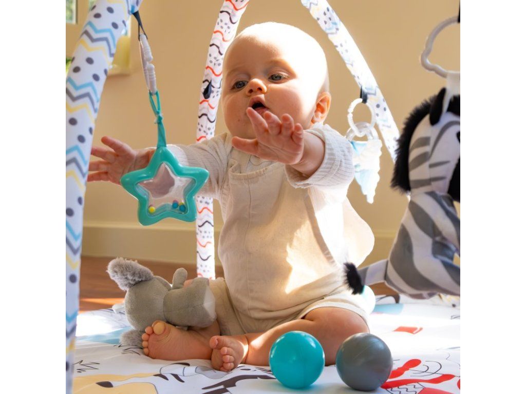 - na hrazdičke je zavesených 5 hračiek s rôznymi aktivitami - je možné ich zložiť a zameniť za iné