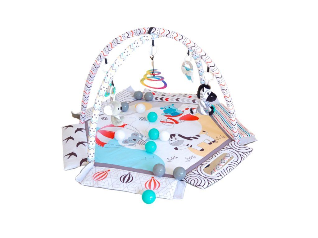 - hracia deka v jemnom dizajne, ktorú je možné počas chvíľky premeniť na bazénik (pomocou suchých zipsov)