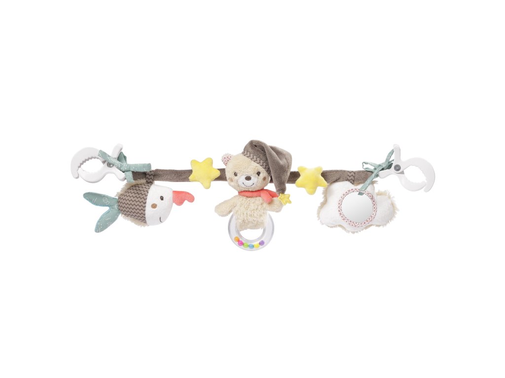 Prívesky sú navrhnuté tak, aby podporovali dieťa v skúmaní a objavovaní a podporovali jeho motorické zručnosti a koordináciu ruka-oko. Ľahko uchopiteľné pre malé detské rúčky. Dva klipy umožňujú rýchle, jednoduché a flexibilné upevnenie na kočík, autosedačku alebo postieľku.