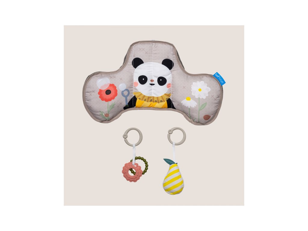 - Pripojená hrkálka a hryzátko podporujú hmat, zrak aj sluch a motivujú k zdvíhaniu a naťahovaniu sa