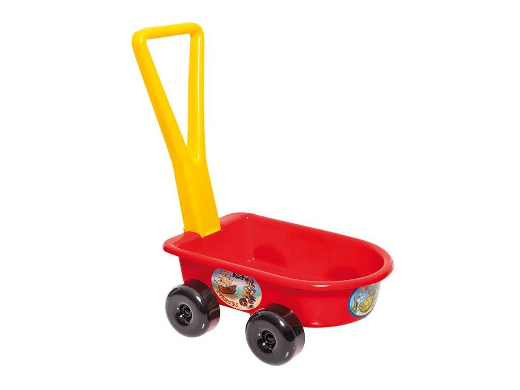 Detský farebný vozík vyrobený z kvalitného plastového materiálu so štyrmi kolieskami a pohyblivou rukoväťou. Na vozíku sú tiež veselé obrázky. Rozmery: 43x27 cm. Určené pre deti od 36 mesiacov. Farba - červená.Dodatočné parametre