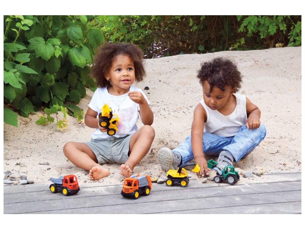 Traktor vyrobený z odolného ABS plastu s vysoko kvalitnými pogumovanými kolesami. 4mm pozinkované oceľové osi. Veľkosť 14 cm.Dodatočné parametre