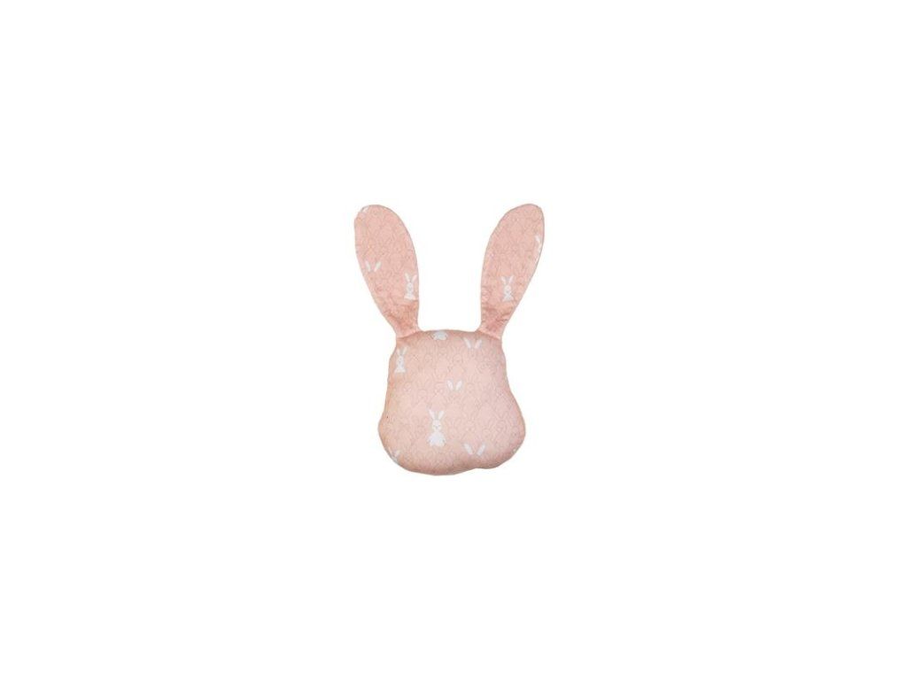 Na jednej strane vankúšiku je roztomilý králiček Elise v mnoho rôznych prevedeniach, vďaka tomu sa obrázok neopozerá a upúta pozornosť dieťaťa, z druhej strany je mäkučké froté s výšivkou tváre králička Hoppy.
