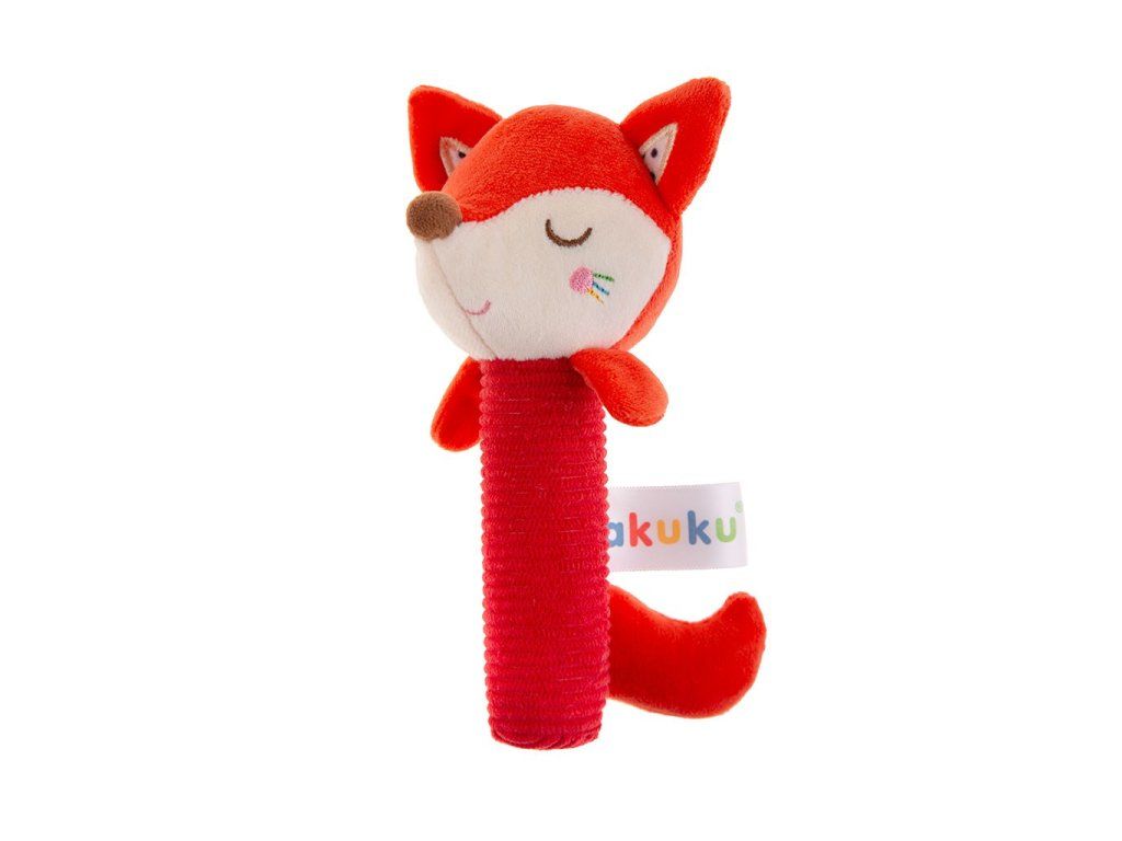Detská pískacia plyšová hračka s hrkálkou Akuku Líška - 54682