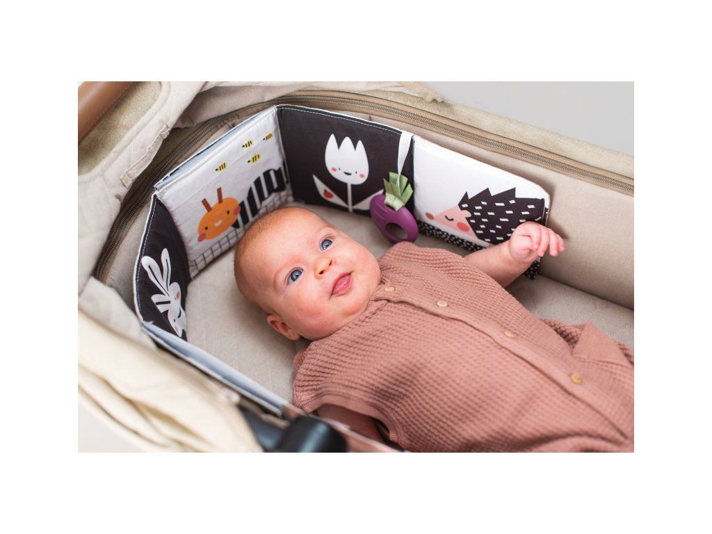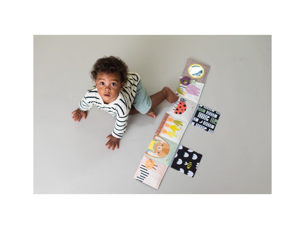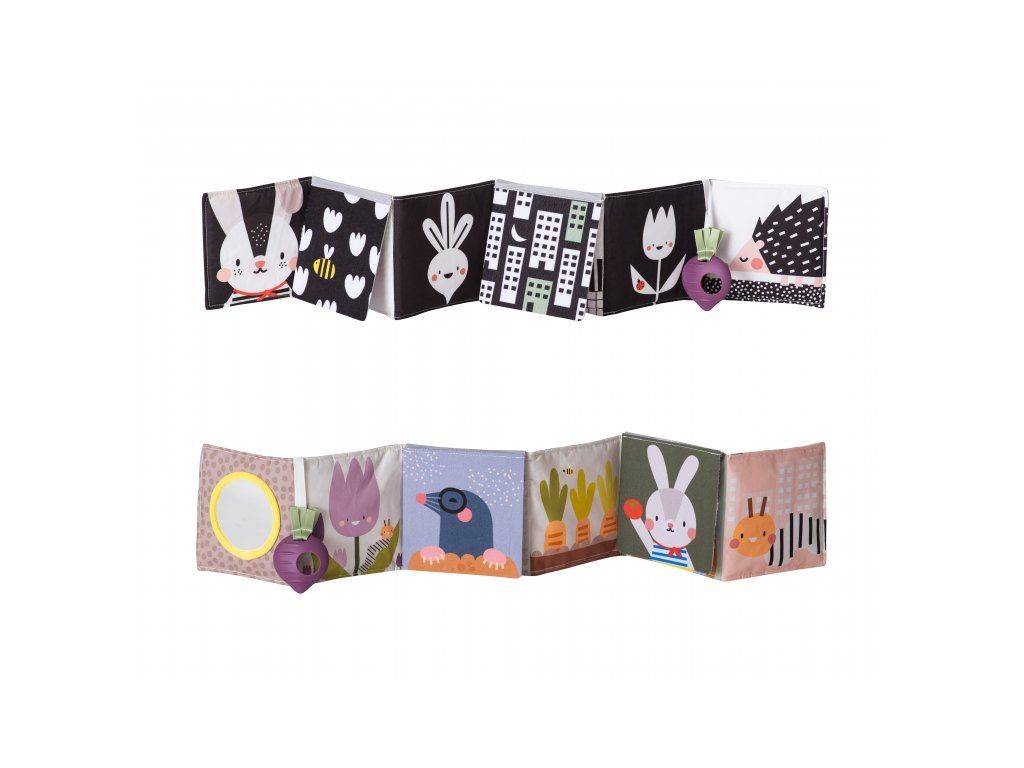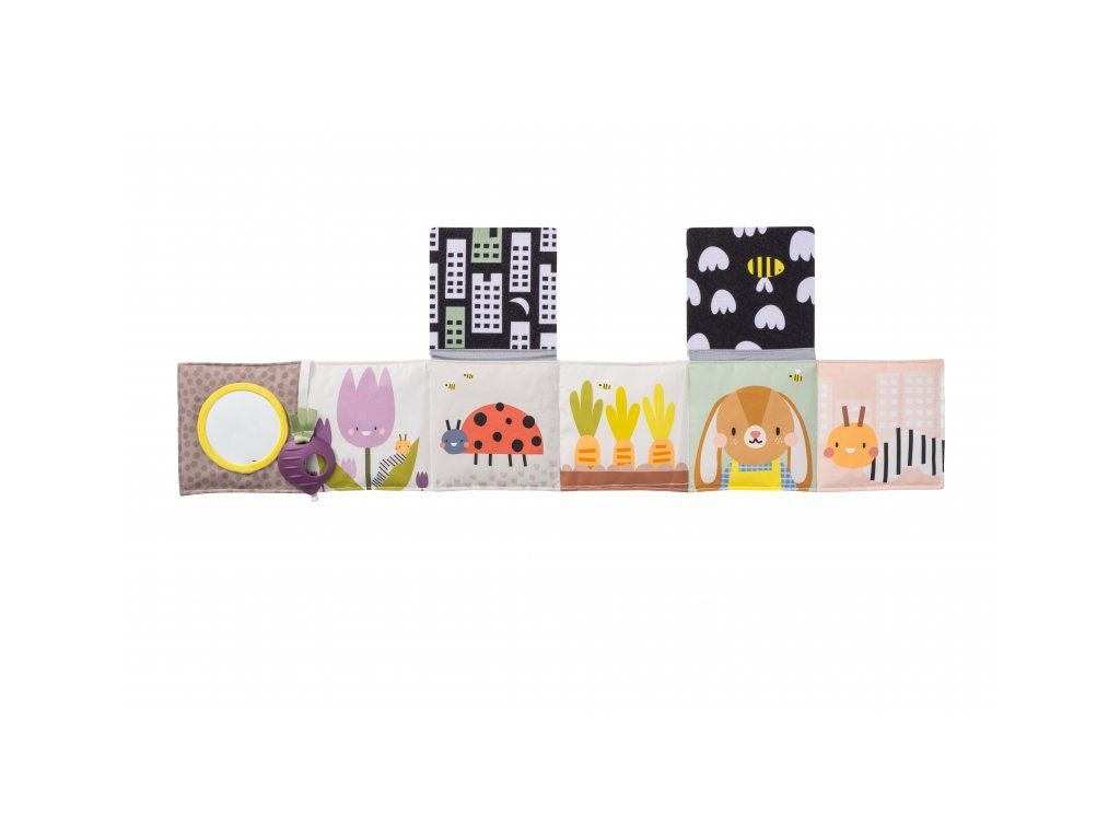 Obojstranná textilná knižka pre najmenších je určená do kočíka, postieľky aj na hraciu deku.