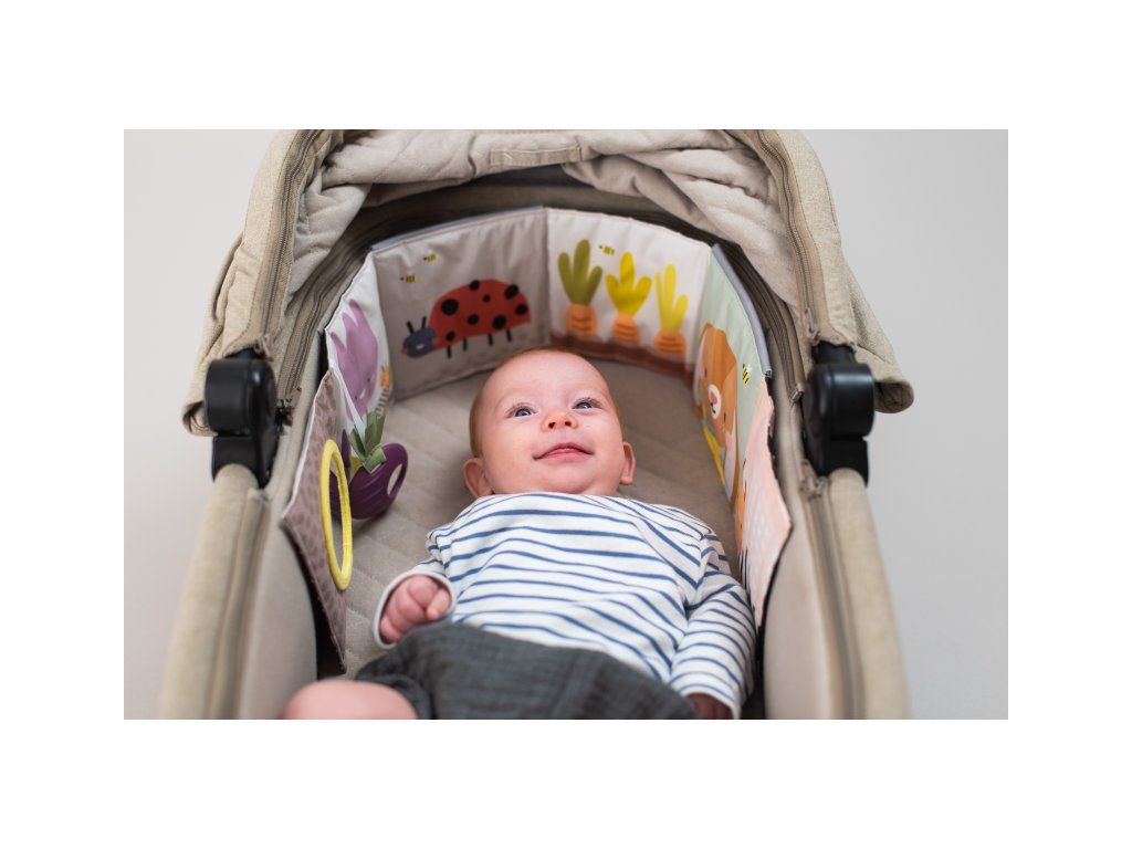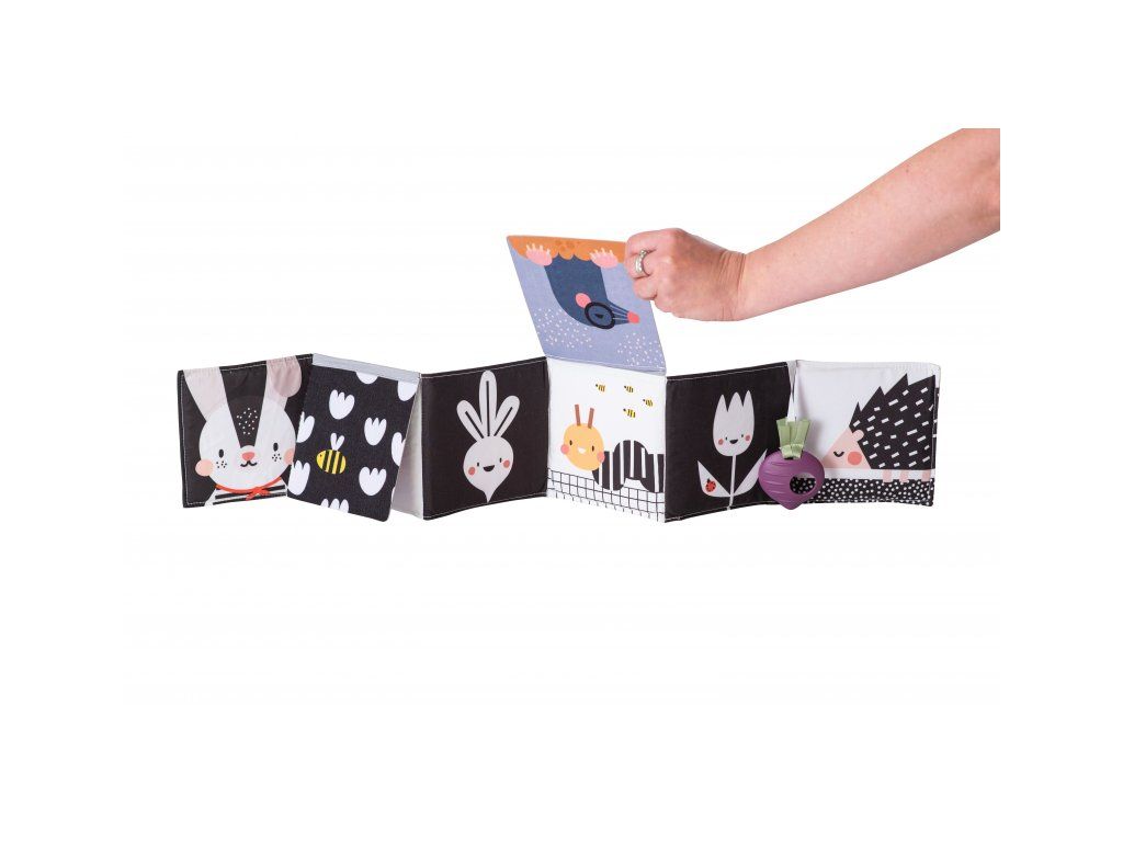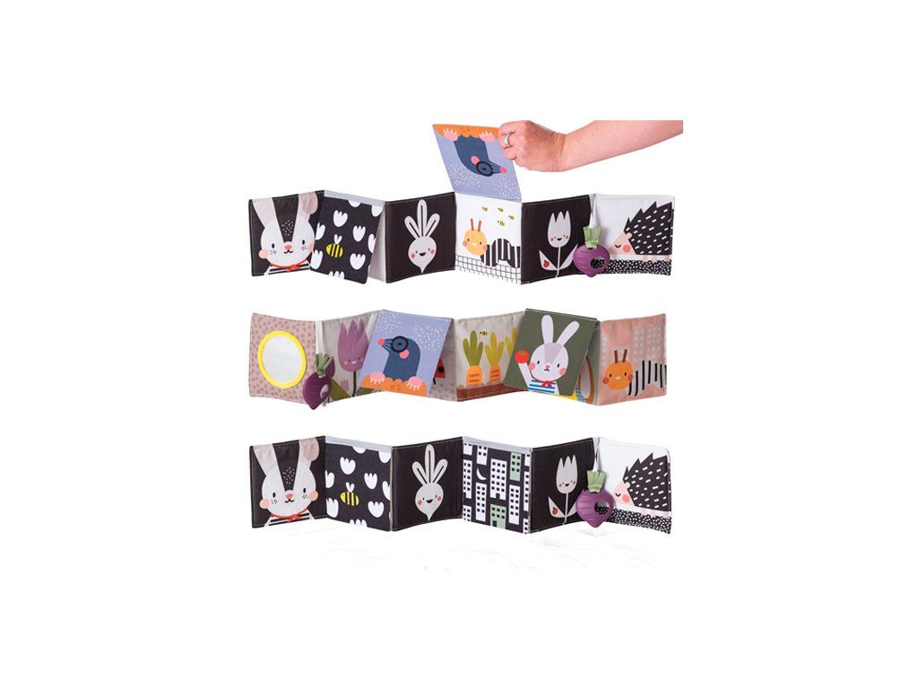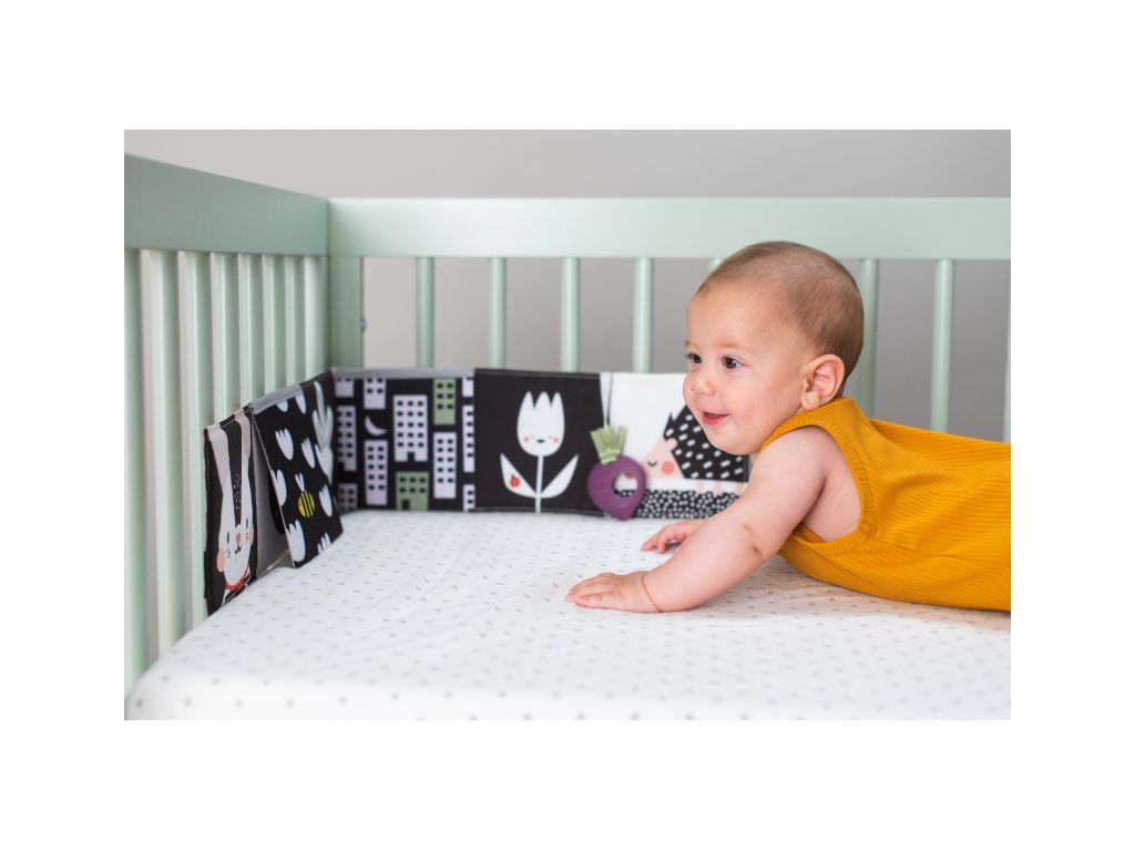 Obojstranná textilná knižka pre najmenších je určená do kočíka, postieľky aj na hraciu deku.