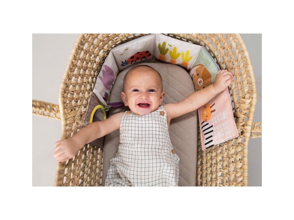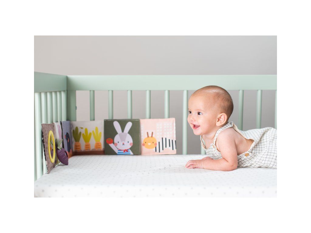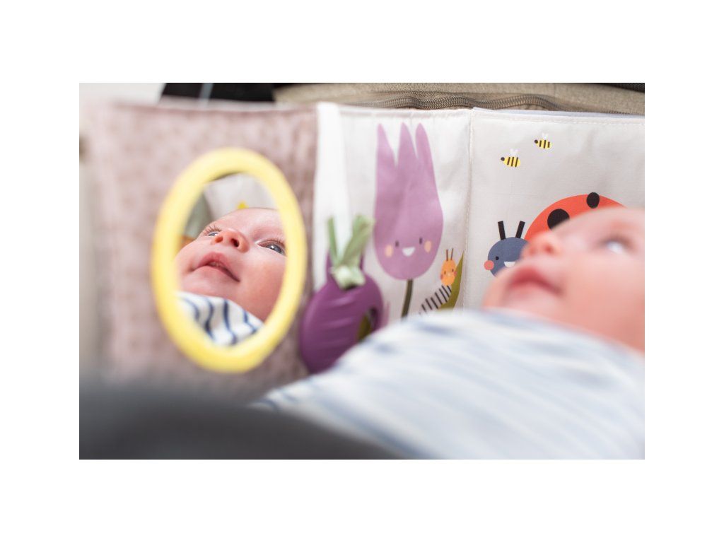 - Od 3 mesiacov: strana farebnými obrázkami, bezpečným zrkadlom, hryzátkom a rôznorodými textúrami na skúmanie, ktoré podporujú rozvoj zmyslov a jemnej motoriky dieťaťa.
