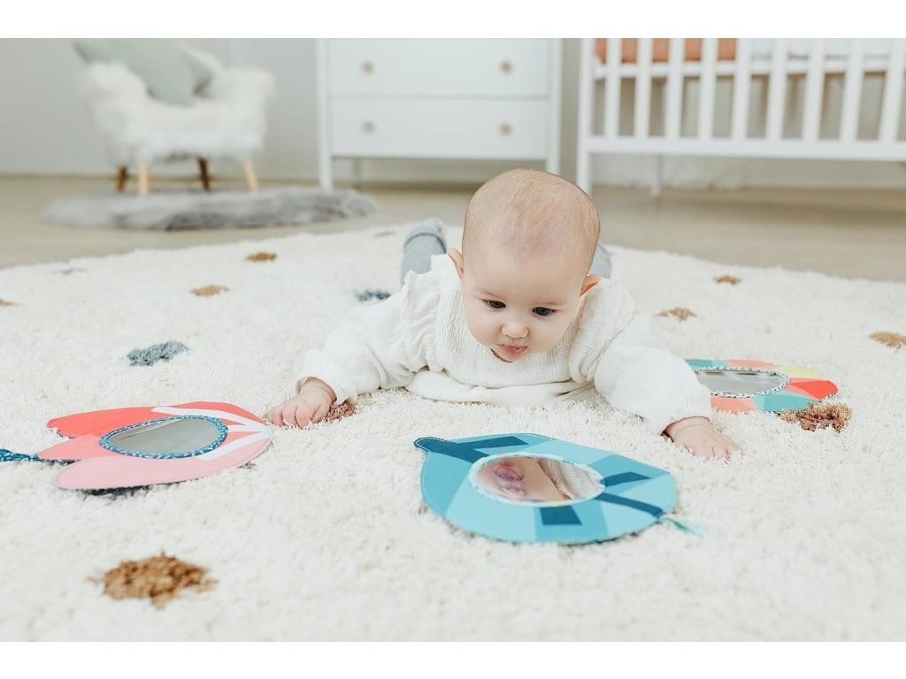 Senzorické zrkadlá sú vyrobené z materiálov, ktoré sú bezpečné pre deti, a sú mimoriadne odolné. Vďaka tomu, že ich môžete prať v práčke (odporúča sa chrániť zrkadlo), je ich údržba rýchla a pohodlná. Rodičia tak môžu ľahko a efektívne udržať hračky čisté a hygienické, čo je dôležité pre zdravie bábätka. Súprava je ideálna pre aktívnu hru a podporu jemnej a hrubej motoriky.