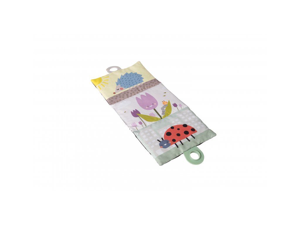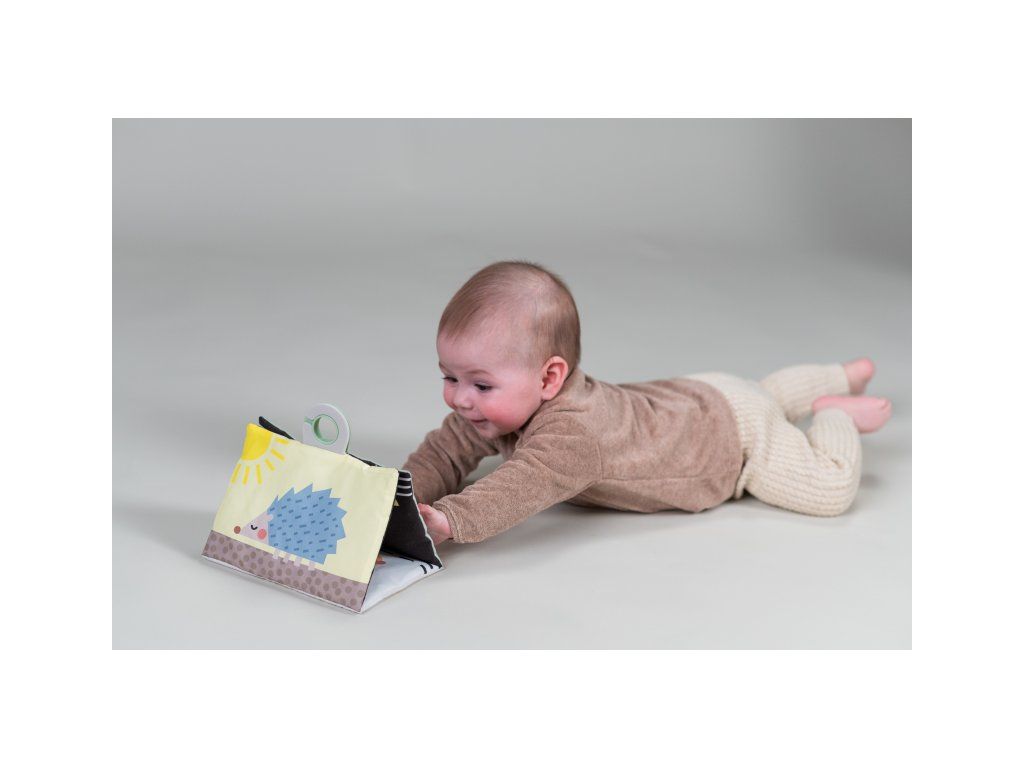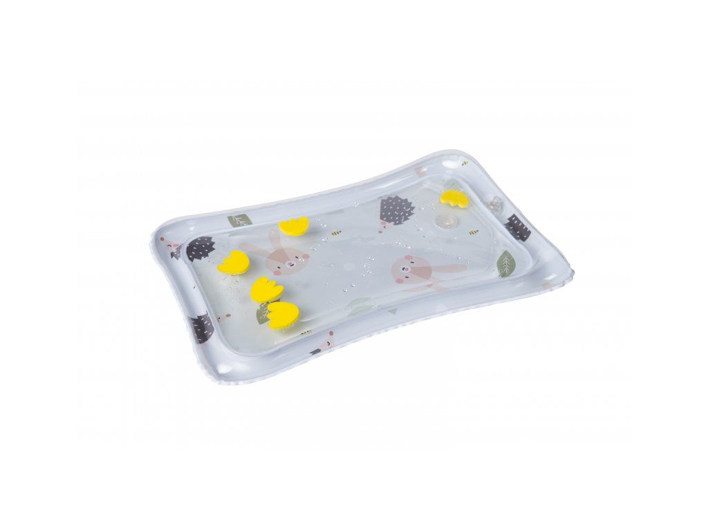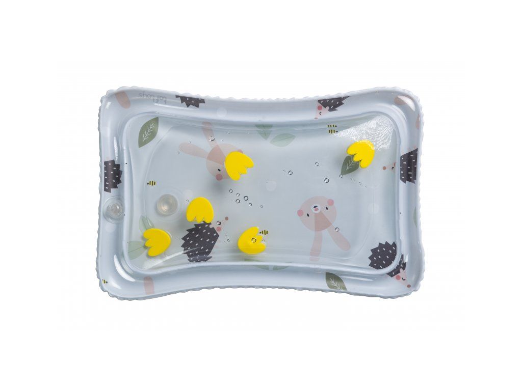 Vankúšik z mäkkého, príjemného materiálu je špeciálne navrhnutý, aby podporoval hranie dieťaťa na brušku.Obojstranná šuštiaca kniha je ideálna pre postavenie pred dieťa v polohe na brušku. Množstvo obrázkov, ktoré kniha ponúka, umožňuje rodičom obrázky vymieňať a udržiavať tak dlhšie pozornosť dieťaťa. Hru na brušku podporuje aj vodná hracia podložka s výraznými žltými kvetmi, ktoré sa vo vode pri stlačení podložky pohybujú a upútavajú tak pozornosť dieťaťa.