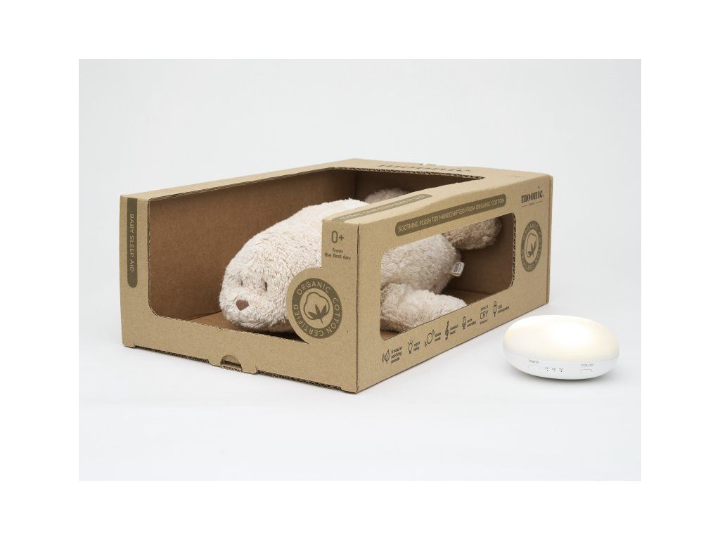 Moonie uspávačik v podobe rozkošného tuleňa s nočným svetlom a relaxačnými zvukmi pomáha bábätku upokojiť sa a ľahšie zaspať. Upokojujúce zvuky pripomínajú dieťaťu prostredie v maternici mamičky pred jeho narodením. Uspávačik ponúka päť prírodných relaxačných zvukov (tlkot srdca, vietor, lesný potok, morské vlny, dážď), kalimba uspávanku, dve klasické uspávanky a umožňuje nahranie vlastného hlasu.