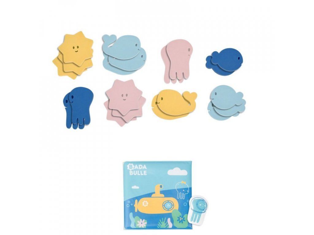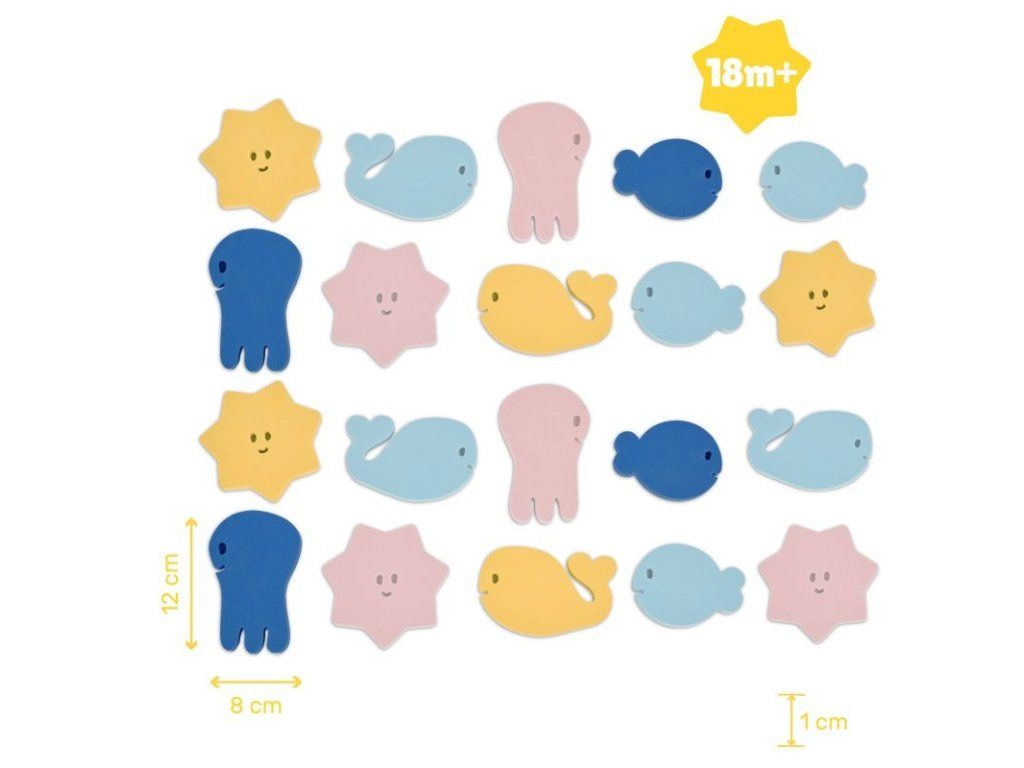 - sada obsahuje: rozkladaciu knižku/leporelo + prstovú maňušku + 20ks penových puzzle, ktoré plávajú na vode a držia na stenách vane či sprchového kúta