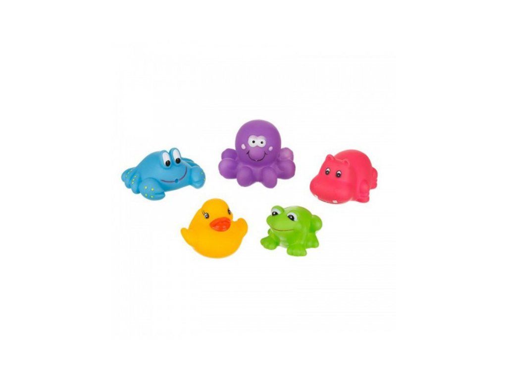 Farebné hračky do kúpeľa Akuku. Sada 5 roztomilých farebných hračiek - kačička, žabka, hrošik, krab, chobotnica. Ideálne na hranie vo vani. Veselé farby priťahujú pozornosť našich najmenších. Každá hračka má otvor, cez ktorý môže striekať voda. Zaoblené tvary zaručujú bezpečnosť počas hry. Vyrobené z bezpečných, vysoko kvalitných materiálov, neobsahujú bisphenol A. Výška hračiek 4 až 5 cm.Dodatočné parametre