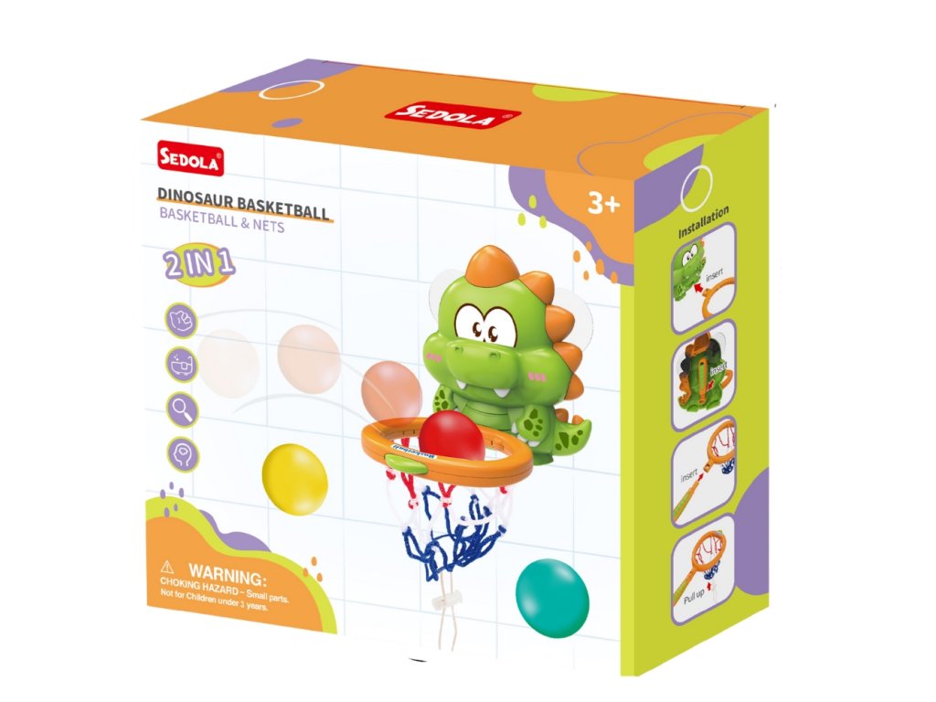 Hračka do vody 2v1 DinoInteraktívna hračka do kúpeľa 2v1Kúpanie s rozkošnou hračkou do vody s motívnom dinosaura premení každodenné kúpanie na zábavnú hru plnú pohybu a fantázie. Tento farebný dinosaurus ponúka deťom dva spôsoby hry v jednom produkte.Vďaka systému 2v1 môžu deti dinosaurovi pripevniť basketbalový kôš a trénovať presnosť hádzaním guličiek priamo do koša. Druhou možnosťou je pripojenie koša k úchytke, vďaka čomu môžu deti guličky chytať a loviť pod vodou, čo podporuje ich motoriku a koordináciu.Hračka je vyrobená z bezpečných materiálov, má hladké tvary a je vhodná pre deti od 3 rokov. Dino sa jednoducho pripevňuje, ľahko používa a prináša do kúpeľa hravý prvok, ktorý deti motivuje tráviť čas vo vode s úsmevom. Kúpanie sa tak mení na aktívnu a veselú hru, ktorú si deti budú chcieť zopakovať znova a znova.Dodatočné parametre