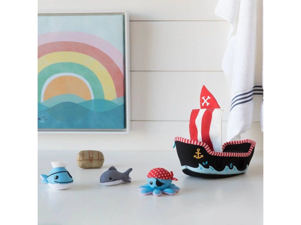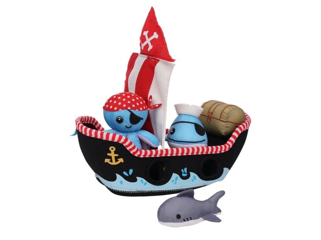 - 1 veľká, neoprénová pirátska loď s vlajkou, ktorá "pláva" vo vode