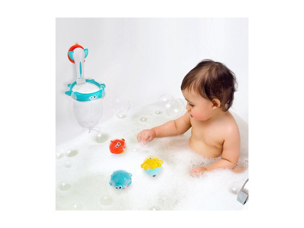 Perfektná vzdelávacia hračka do vane. Spríjemnite kúpeľ každému dieťaťu. Naučí ho rozlišovať farby, tvary a rozvoj koordinácie oko-ruka. Zvieratká aj kôš plávajú na vode. Táto hračka je perfektným riešením pre rodičov, ktorých dieťa sa bojí vody a nemá rado kúpanie. Všetky hračky majú otvory, ktorými voda vytečie. Pochytať všetky zvieratká nie je až tak jednoduché, ako by sa na prvý pohľad mohlo zdať, pretože po ulovení mení svoju polohu.