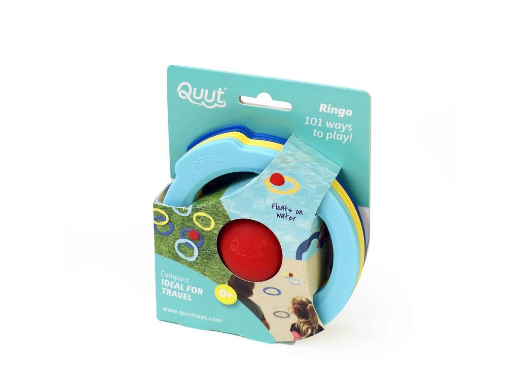 Ringo je najuniverzálnejšia a najkompaktnejšia hra na „pétanque“ všetkých čias! 6 farebných ľahkých krúžkov a malá loptička rovná sa nekonečné možnosti hrania. Ringo je možné použiť vo vode, na pláži, v záhrade alebo aj vo vnútri. Kompaktné balenie z neho robí ideálnu hru na cesty! Ringo sa perfektne kombinuje s ďalšími hračkami Quut ako napríklad Cuppi. Môžete si dokonca vymyslieť svoje vlastné hry!- Ideálna cestovná hra: kompaktná a nízka hmotnosť.