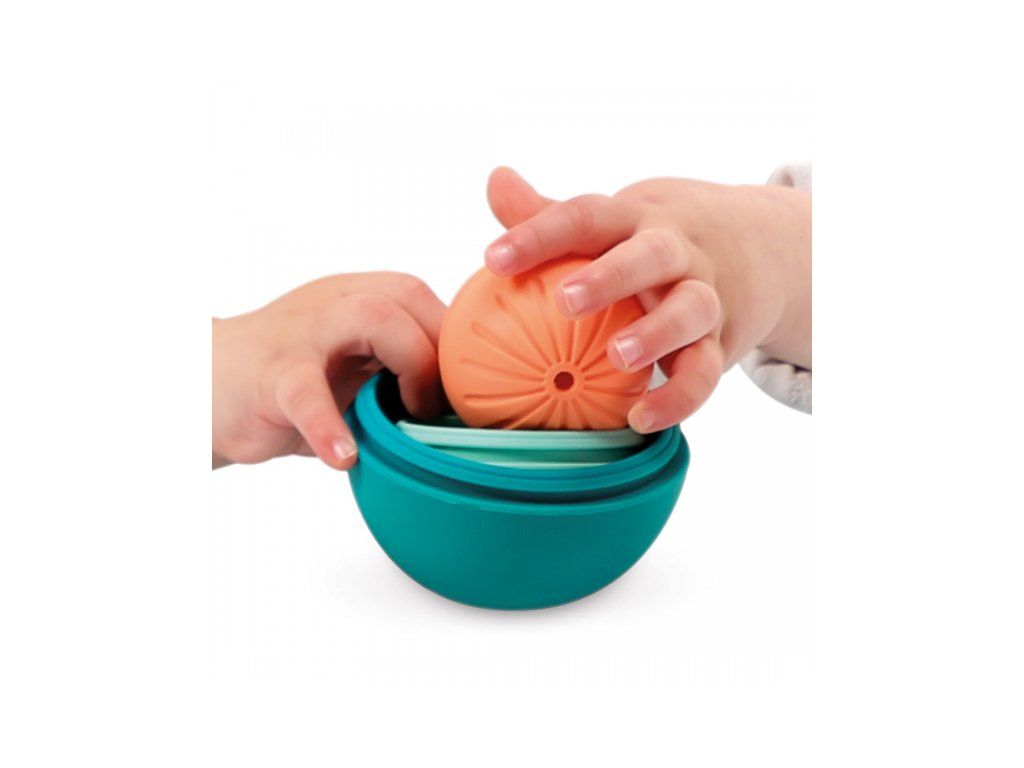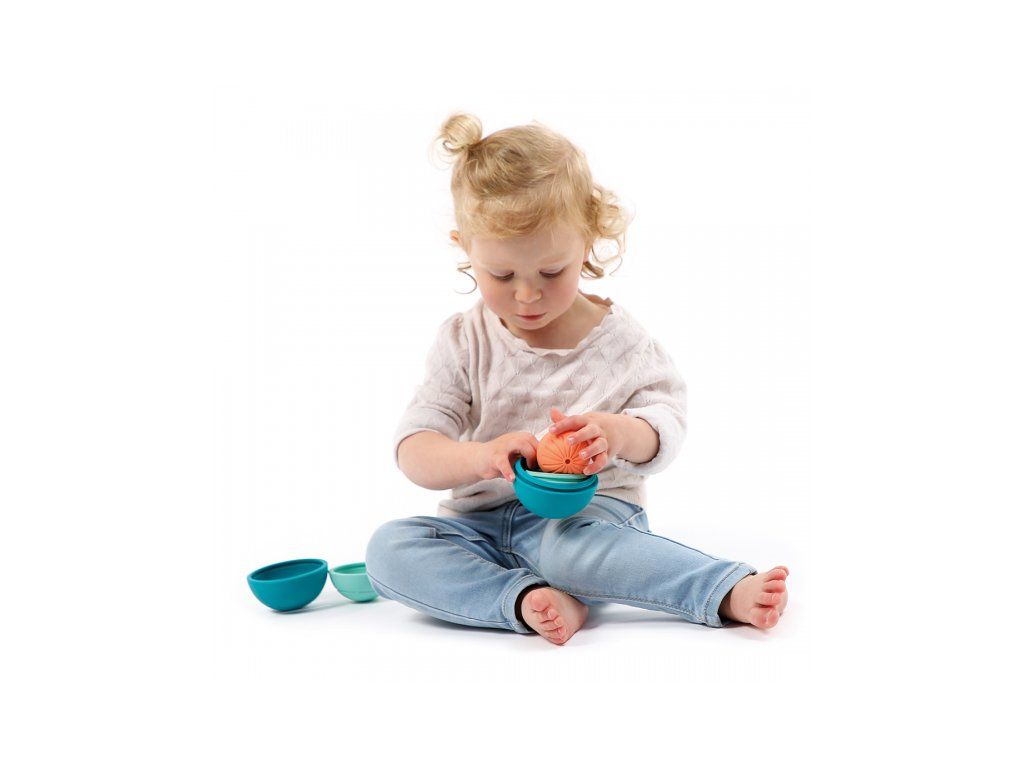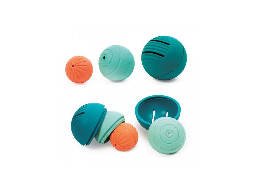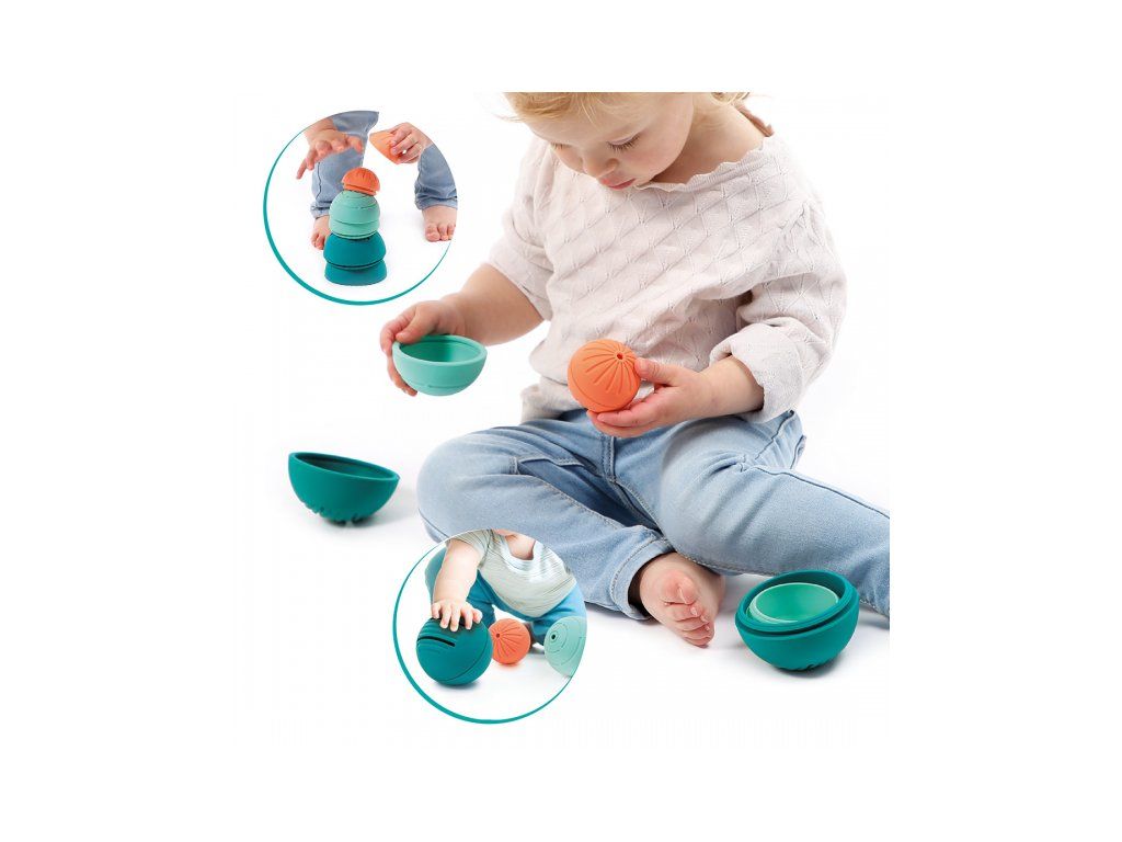 - Akonáhle sa dieťa naučí sedieť, môže loptičky stavať na seba a vkladať ich do seba ako matriošky