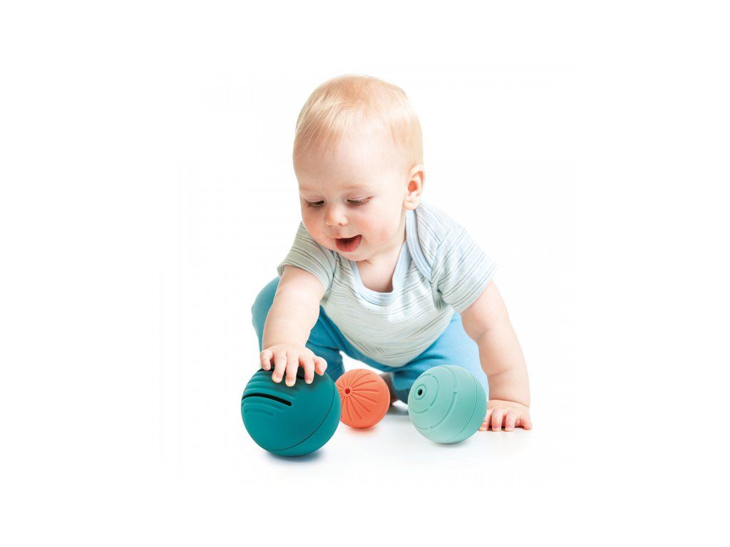 Súprava troch mäkkých silikónových loptičiek je ideálnym pomocníkom pre rozvoj motoriky a zmyslov už od útleho veku. Vďaka rôznym veľkostiam a textúram rastie s dieťaťom a prináša zakaždým nové možnosti hry.