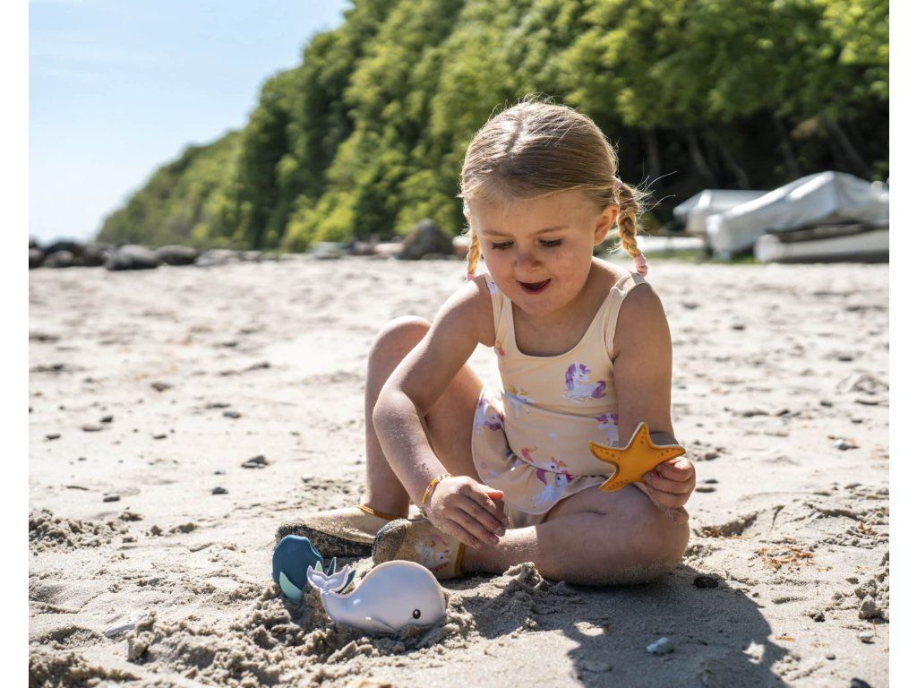 Zoznámte sa s priateľmi z mora – zvedavou malou hviezdicou, hravou chobotnicou so zábavnými chápadlami a veľrybou Christian, ktorá je vždy pripravená striekať a hrať sa. Každá figúrka sa vo vode pohybuje inak: niektoré klesajú, iné plávajú – no všetky podnecujú zvedavosť a pozývajú k hre a objavovaniu. Jemné morské farby a priateľské tvary prinášajú pokojné čaro oceánu priamo do vane aj k okraju bazéna.
