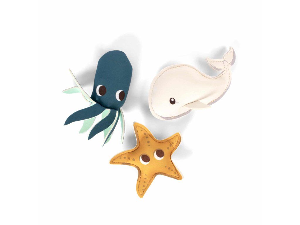 Sada obsahuje tri mäkké a farebné hračky do vody z odolného neoprénu – navrhnuté tak, aby podporovali zvedavosť, pohyb a fantazijnú hru vo vode. Od prvých kúpeľov vo vani až po odvážnejšie ponory v bazéne sa hračky prispôsobujú dieťaťu krok za krokom a prinášajú radosť z vody prostredníctvom hry a objavovania.