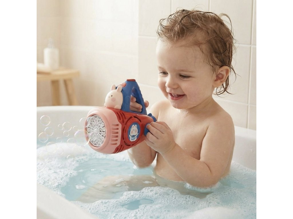 Pištoľ na tvorenie bublín ZajačikSvet bubliniek so zajačikomPištoľ na tvorenie bublín Zajačik urobí z každého kúpania ale aj z hry na dvore nezabudnuteľnú bublinovú šou. Do nádobky stačí naliať bublinový roztok, pripojiť ju k pištoli a jedným stlačením spúšte sa spustí prúd drobných bubliniek, ktoré deti milujú naháňať a praskať. Ľahká konštrukcia a ergonomická rukoväť sú prispôsobené detským rúčkam, takže sa hračka pohodlne drží a neunavuje ruku ani pri dlhšom používaní. Pištoľ je vyrobená z kvalitného plastu, ktorý je odolný voči nárazom a zároveň má hladké hrany pre bezpečnejšiu hru. Hračka funguje na batérie, ktoré nie sú súčasťou balenia.Nevhodné pre deti do 3 rokov. Používať len pod priamym dohľadom dospelej osoby.Dodatočné parametre