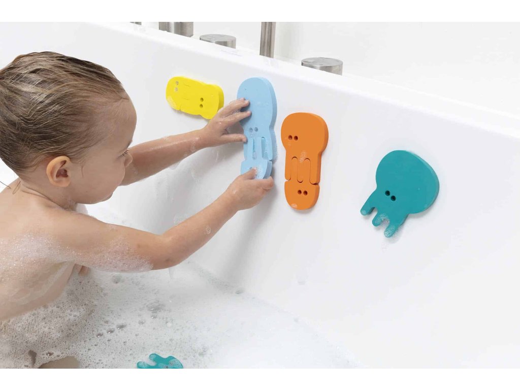 QUUTOPIA - Vytvor, predstav si a hraj sa! Pútavé puzzle do vody s medúzami pre ešte väčšiu zábavu z kúpeľa! Spájanie tvarov rôznych medúz pomáha dieťatku zdokonaliť jemnú motoriku. Všetky tvary plávajú na vode, namokro ich jednoducho "nalepíte" na vaňu a vytvárate tie najrôznejšie kreácie. Mäkká pena je bez BPA, bez obsahu ftalátov a latexu a je recyklovateľná. Všetky kúsky neabsorbujú vodu a znižujú riziko vzniku plesní. Rozmery: 210 x 240 x 27 mm Vhodné pre deti od 10 mesiacov.Dodatočné parametre