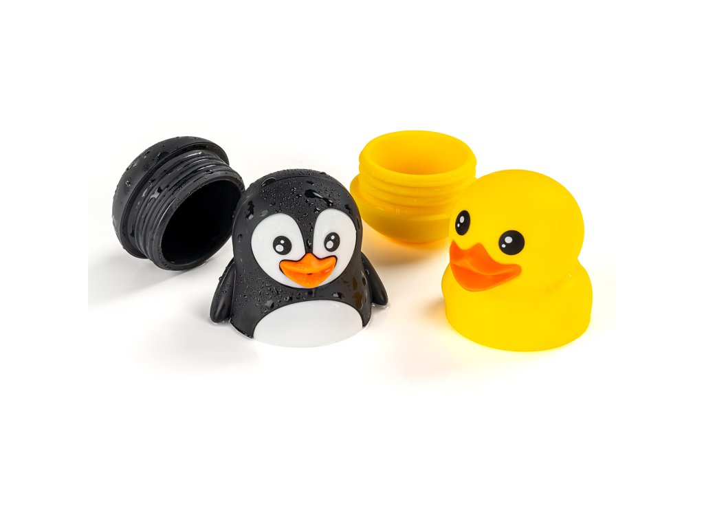 Ideálne na špliechanie sa vo vode, 2 spôsoby striekania vody: zo zobáka alebo z tela . Časti je možné rozobrať pre jednoduché čistenie a hygienické sušenie. Materiál: silikón, obsah: 2 kusy (1x kačička, 1x tučniak).