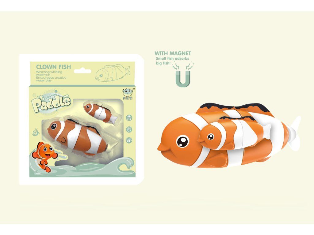 Súprava mamičky a bábätka. Väčšia rybička je na batérie a pláva sama. Menšia na batérie nie je.Dodatočné parametre
