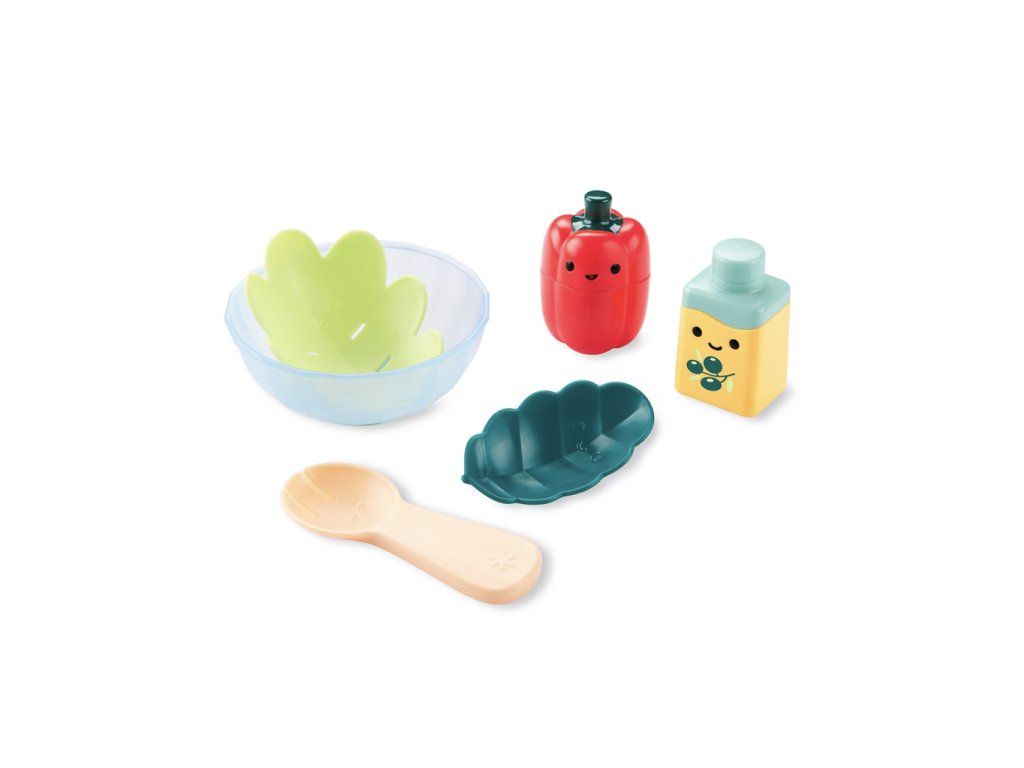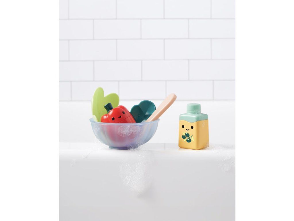 Objavte zábavu v kúpeľni so sadou Tub to Table Café - Zábavný šalát, ktorá umožní vašim malým kuchárom vytvoriť si vlastný zdravý šalát priamo vo vani! Táto roztomilá sada je perfektná pre rozvoj motorických zručností a podporu kreatívnej hry.Balenie obsahuje: cedník, sitko na šalát, kapustu, lyžicu na miešanie, papriku a olivový olej v podobe striekačky. Malí kuchári môžu nielen "umývať" svoje ingrediencie, ale aj zábavne striekať vodu pomocou striekačky, ktoré sú vyrobené z dvoch častí pre jednoduché čistenie.
