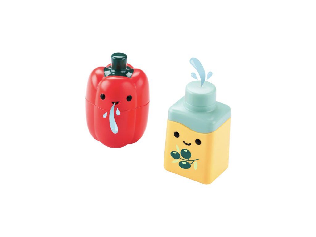 Priesvitná miska a sitka s otvormi preceďujú vodu, čím sa deti zabavia a zároveň rozvíjajú svoje motorické schopnosti. Tento set stimuluje hru na predstieranie a podporuje učenie cez príčinu a následok. Každý kúpeľ sa tak stáva skvelým dobrodružstvom v kuchárskom štýle!