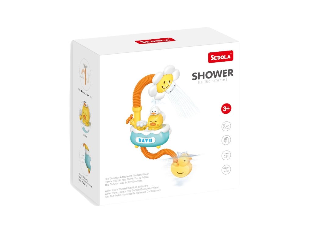 Sprcha do vane KvetinkaNech je kúpanie zábava, nie povinnosťSprcha do vane Kvetinka premení kúpanie na zábavný zážitok. Základňa sa pomocou prísaviek pripevní na stenu vane alebo obklad a ponorné čerpadlo vo vode zabezpečí nepretržitú cirkuláciu vody. Po stlačení tlačidla sa spustí jemný prúd z hlavice v tvare kvetinky, ktorá je otočná o 360°, takže voda môže byť nasmerovaná presne tam, kde je potrebné.Súčasťou sprchy je aj vaňa s kačičkou, na ktorú je možné pripevniť rôzne nadstavce, pričom podľa typu nadstavca sa menia rôzne spôsoby striekania vody. Voda môže striekať z hlavnej hadice, z kačičky alebo z oboch naraz, pričom tento režim je ľahko nastaviteľný podľa potreby. Deti sa tak môžu samy sprchovať, napúšťať vodu do vedierok či formičiek a objavovať vodné hry hravou formou.Jemný prúd vody je prispôsobený detskej pokožke a vďaka recyklácii vody z vane sa spotrebuje len minimum čistej vody. Sprcha do vane Kvetinka je vyrobená z kvalitného plastu s hladkými hranami, vhodná pre deti od 3 rokov, a predstavuje praktický aj zábavný darček pre všetkých malých milovníkov vodných hier. Baterky nie sú súčasťou balenia.Nevhodné pre deti do 3 rokov. Používať len pod priamym dohľadom dospelej osoby.Dodatočné parametre