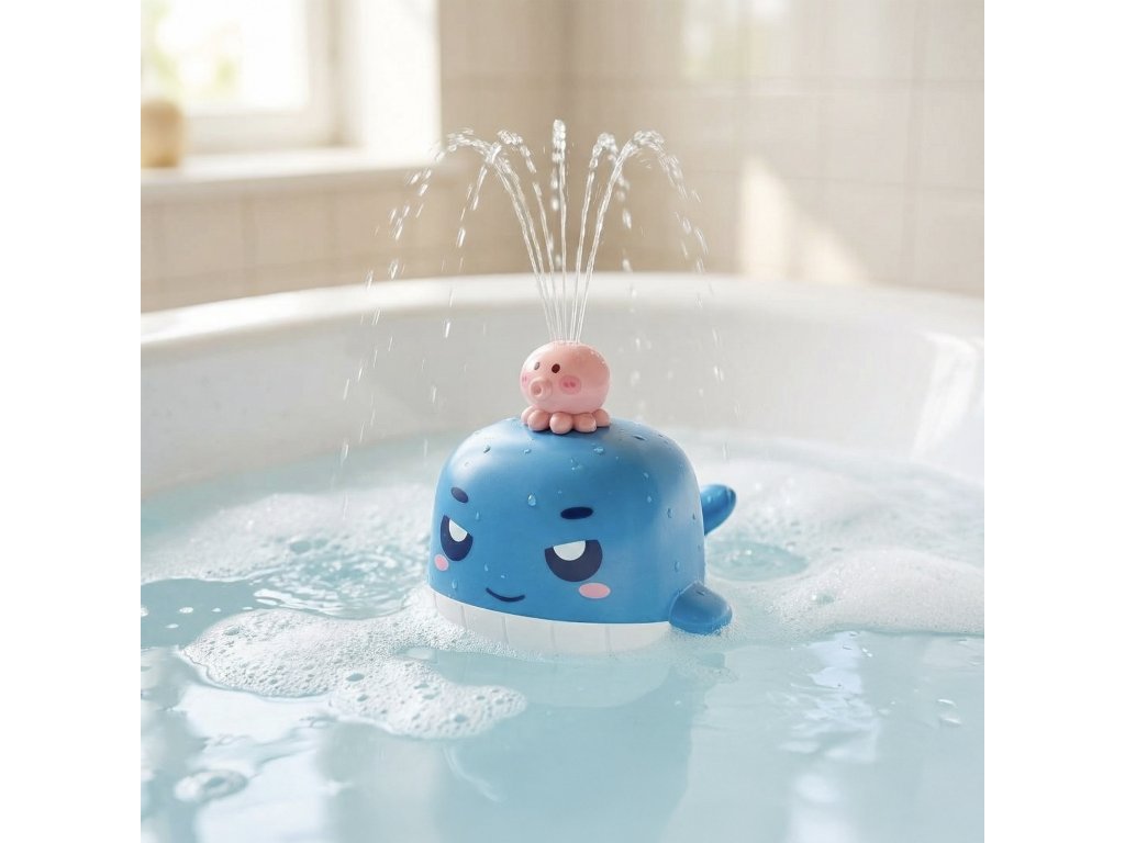 Striekacia hračka do vody Veľryba modráKúpanie plné radosti a vodnej zábavyStriekacia hračka do vody Veľryba modrá premení kúpanie na veselú vodnú šou, pri ktorej deti sledujú, ako veľryba pláva po hladine a z chrbta jej striekajú pramienky vody. Po položení na vodu sa vďaka spodným senzorom alebo spínaču automaticky aktivuje čerpadlo, ktoré vytvára jemnú fontánku, pričom malá ružová chobotnička na chrbte dotvára hravý vzhľad hračky. Hračka podporuje zmyslové vnímanie a motivuje deti, aby si kúpanie spájali so zábavou, nie povinnosťou. Veľryba je vyrobená z kvalitného plastu s hladkými hranami, batérie sú ukryté v utesnenom priestore prispôsobenom kontaktu s vodou, takže je vhodná na hru vo vani aj v bazéne pre deti od približne 3 rokov. Striekacia hračka do vody Veľryba modrá je skvelým darčekom pre všetky deti, ktoré milujú morské zvieratká a vodné hry. Batérie nie sú súčasťou balenia.Nevhodné pre deti do 3 rokov. Používať len pod priamym dohľadom dospelej osoby.Dodatočné parametre