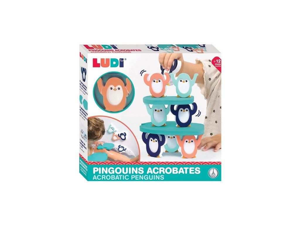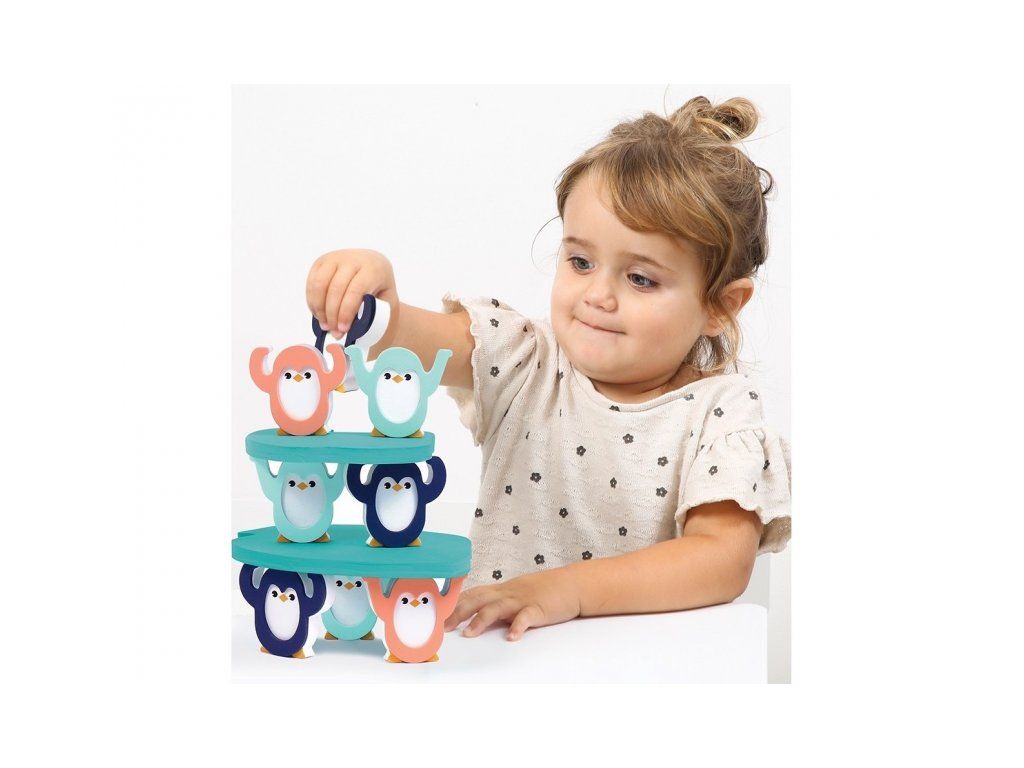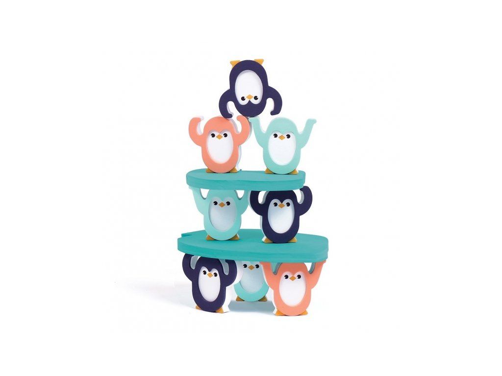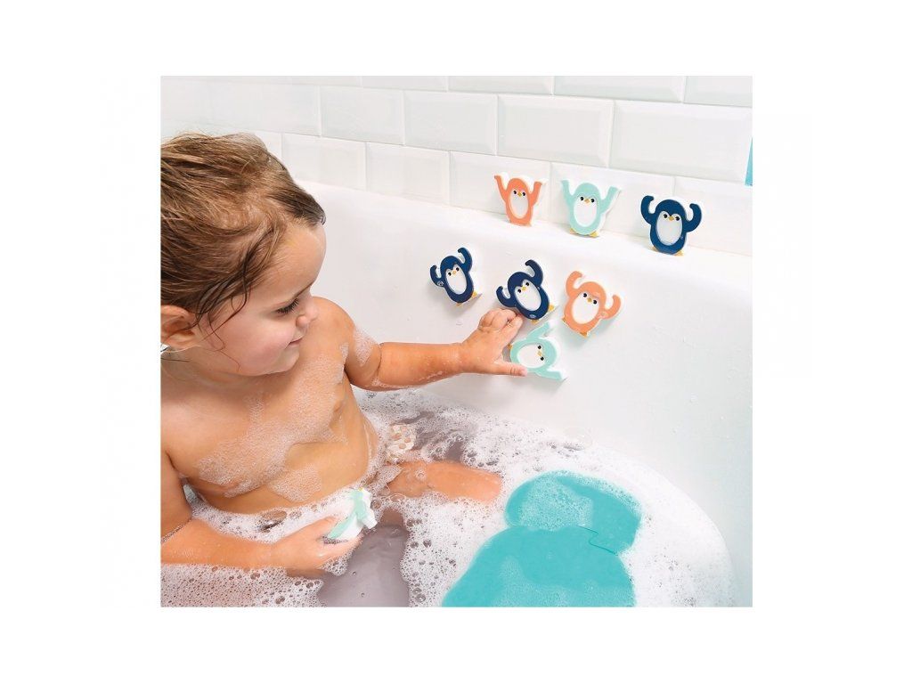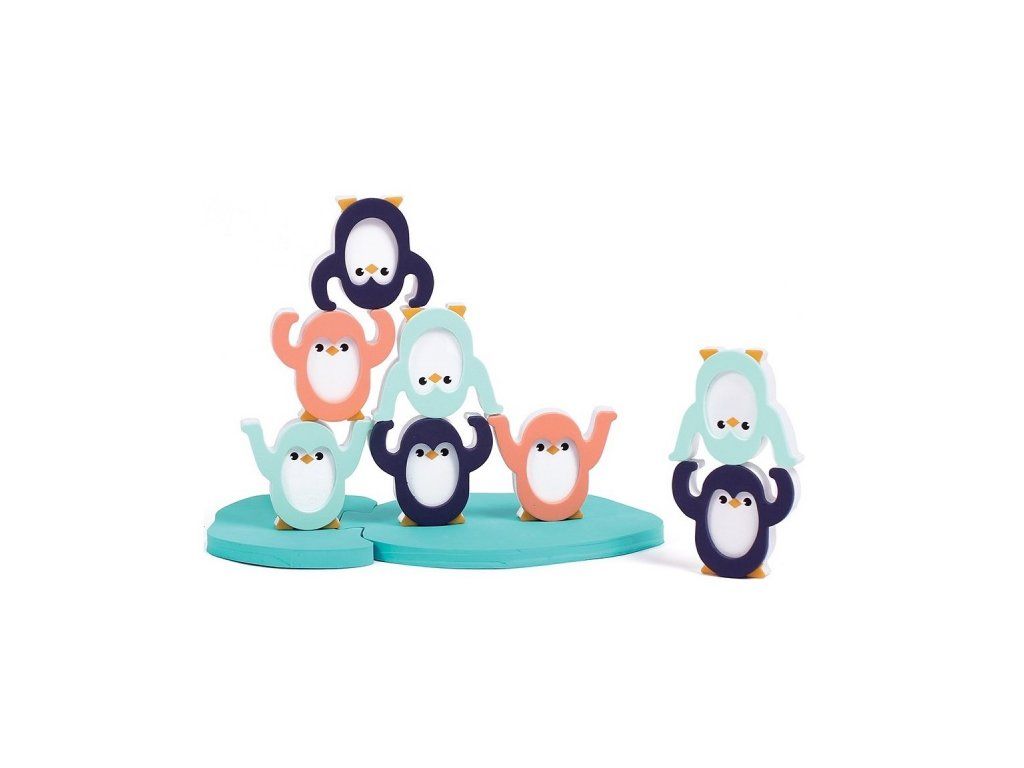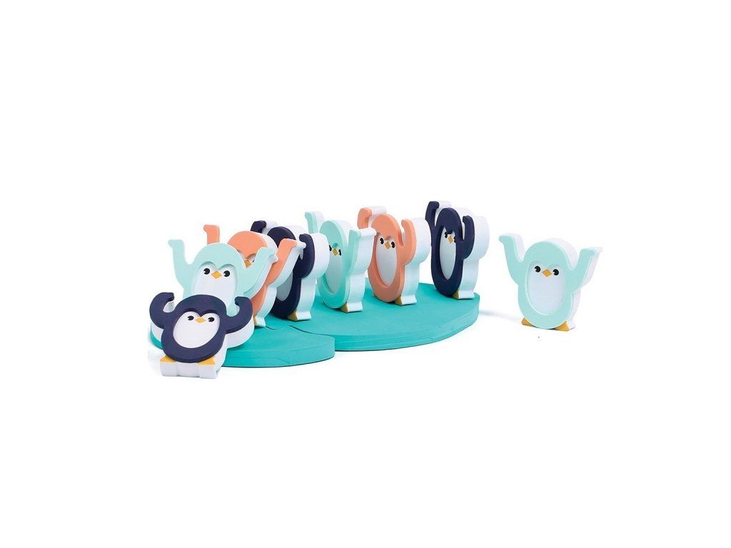 Zábavnú sadu hračiek do vody tvoria dve plávajúce plošiny a 8 rozkošných tučniakov, ktorí na plošinách balansujú. Tučniaky je možné stavať rôznymi spôsobmi na seba a vytvárať z nich pyramídy. Po namočení tučniaky držia prilepenie na vani. Alebo ich postavte do radu za sebou a nechajte ich padať ako domino. Hračka je vhodná nielen na hranie vo vode, ale aj na stole či na zemi.
