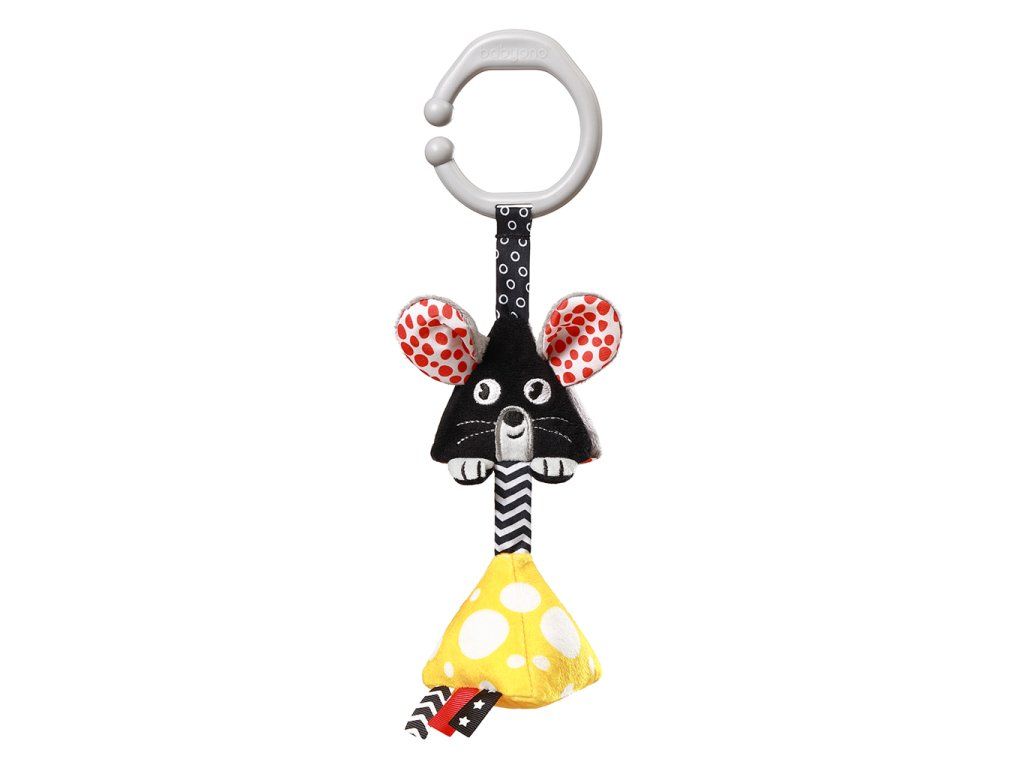 Závesná kontrastná hračka v podobe myšky uvedie vaše dieťa do sveta prvých farieb, zvukov a textúr. Pripevnite ju na postieľku, kočík alebo autosedačku.Hrkajúci syr a myška spolu so šuštivými uškami stimulujú sluch a zoznamujú dieťa s rôznymi zvukmi. Farebné visačky a kučeravý chvostík podporujú uchopenie a zručnosť prstov.