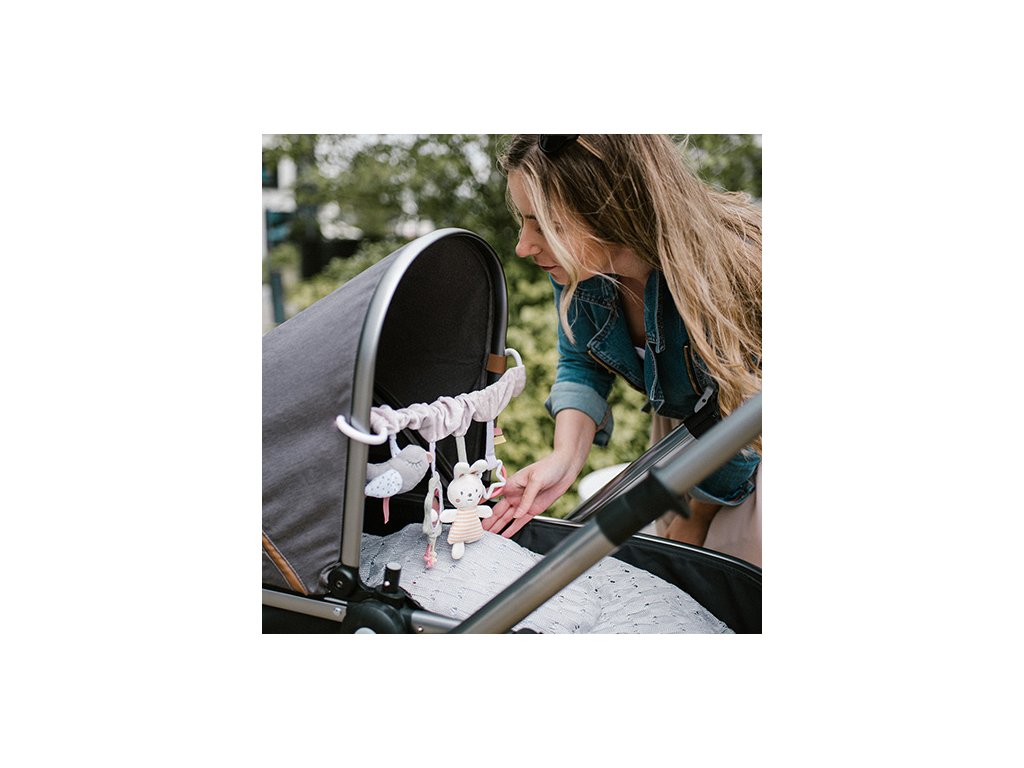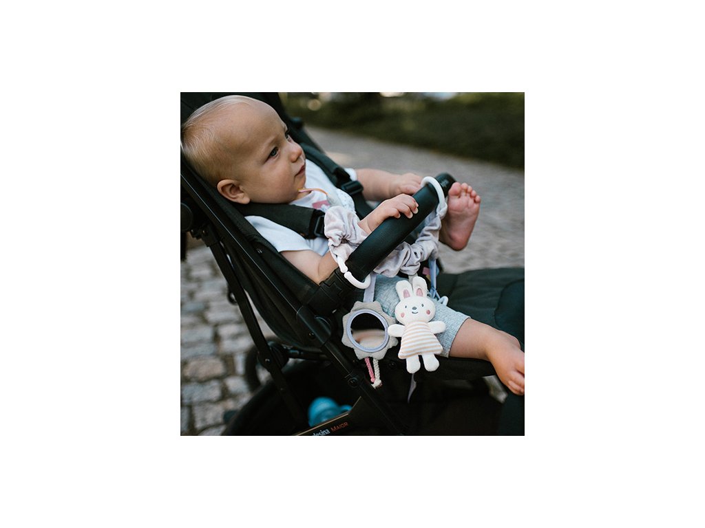 - Pomocou praktického a univerzálneho úchytu pripevníte hračku ku kočíku, autosedačke aj postieľke.