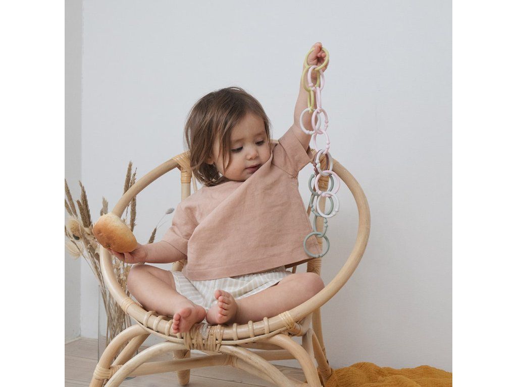 Krúžky BIBS Loops sú super praktickým pomocníkom. Vytvorte si z nich krásnu farebnú retiazku a zaveste na kočík, autosedačku, postieľku či nad prebaľovací pult pre uchytenie hračky, cumlíka, plienky, čohokoľvek,... BIBS Loops krúžky sú navyše zaujímavá hračka, ktorá zabaví dieťatko na dlhý čas a rozvíja jeho jemnú motoriku.BIBS Loops krúžky sa vyrábajú v najžiadanejších BIBS farbách a sú nie len praktickým pomocníkom ale zároveň hračkou, ktorá je vždy po ruke, a súčasne štýlovým doplnkom vo výbavičke vášho dieťatka. Navrhnuté a vyrobené v Dánsku. Bezpečný potravinársky polypropylén (PP), 100% bez BPA, PVC a ftalátov. Ľahučký a zároveň pevný materiál. Testované a certifikované podľa EU noriem. Vhodné od 3 mesiacov. Čistite teplou vodou príp. jemným saponátom. Sterilizujte vo vriacej vode, nie v mikrovlnnej rúre ani v umývačke riadu.Veľkosť: vonkajší priemer krúžka cca 5,2 cm.Dodatočné parametre