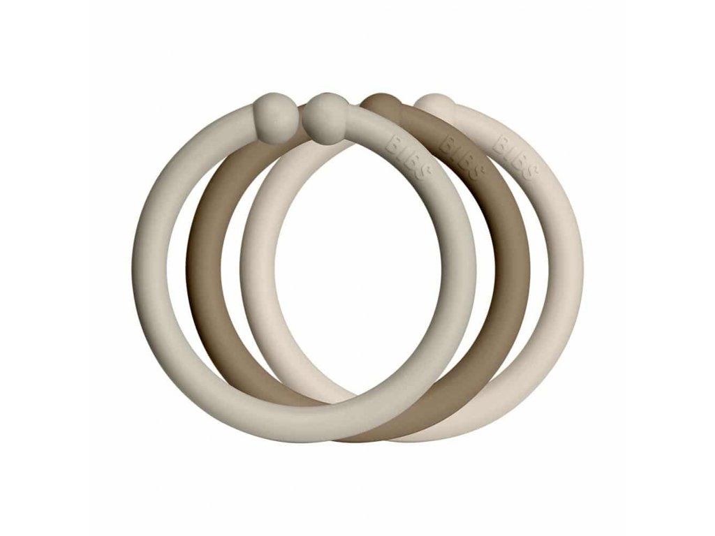 BIBS Loops krúžky 12ks,Sand / Dark Oak / Vanilla